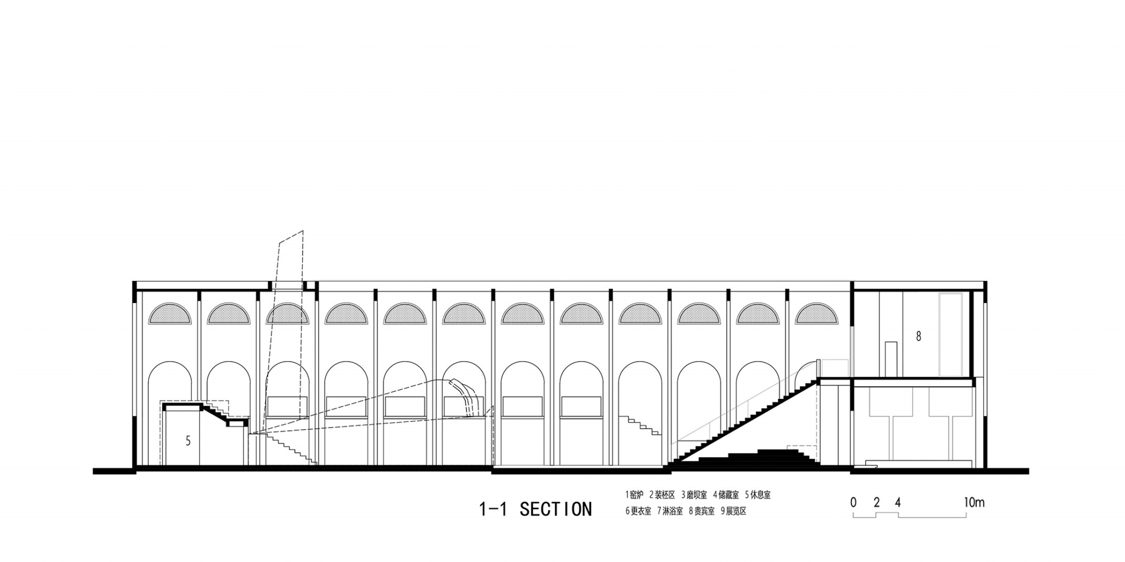זהו כבשן עץ מסורתי הקרוי BingDing. לכבשן צורת ביצה ומבנה בטון תוחם אותו, חזיתו המקושתת פונה למבנה הלבנים המקושת של הכבשן. הבניין החדש בנוי סביב הכבשן המהווה גרעין, בצורת ציר. המבנה מוקף הרים ויערות במבוק, בסביבה שלווה.