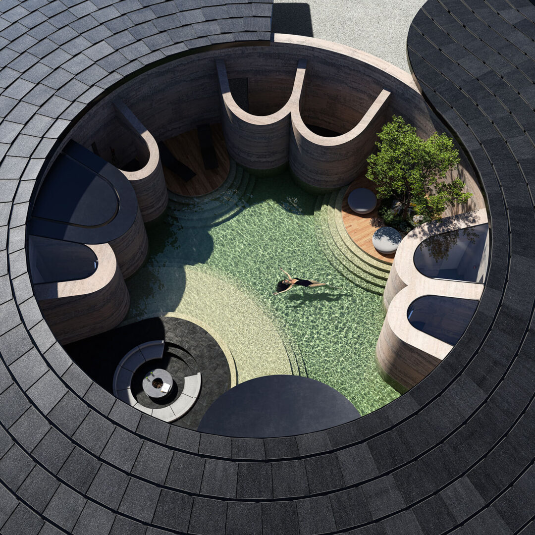 סטודיו האדריכלות הדני Bjarke Ingels Group (BIG), תכננו עבור קבוצת מלונאות היוקרה היפנית Not A Hotel, אתר נופש יוקרתי שצפוי להיפתח בשנת 2026, באי Sagishima באזור Setouchi של יפן - שלישיית וילות מעוגלות הנארגות באופן טבעי בשטח ההררי של האי הנידח.