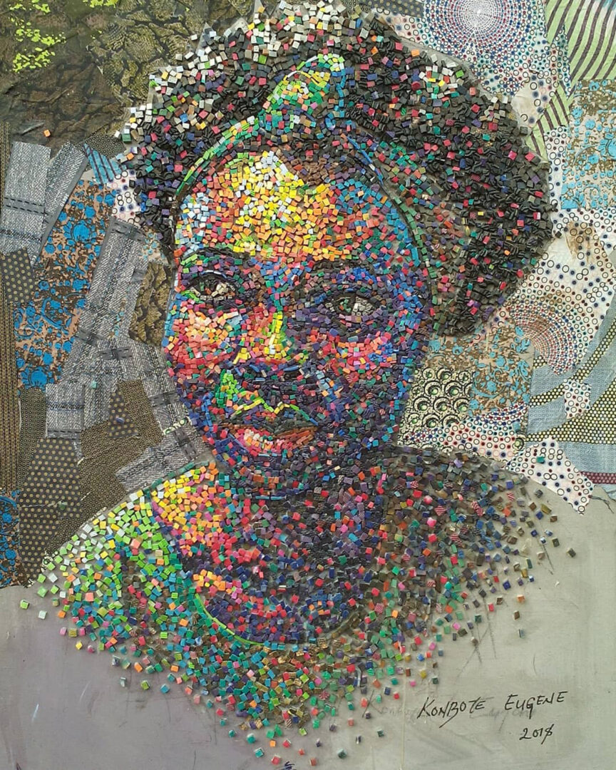 מאז 2017, נובר הצעיר הניגרי (בן 29) Konboye Ebipade Eugene, בערימות של פסולת שהושלכה בניגריה ודולה מהן כפכפים משומשים, למחזר וליצור מהם את יצירות האמנות שלו.