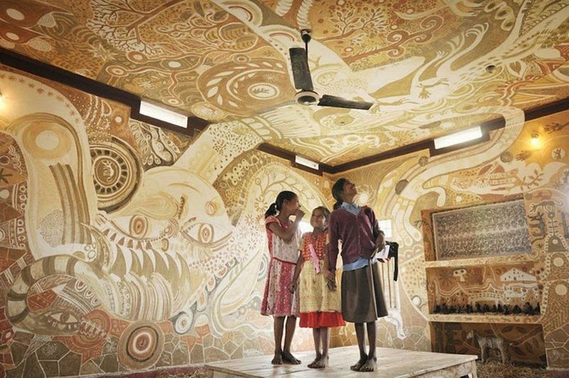הארגון ללא מטרת רווח The Wall Art Project, מטוקיו, המארגן את פסטיבל אמנות הקיר (WAF), מיזם להכנסת אמנות לבתי ספר במקומות עניים כמו הודו וטיבט – גייס אותו, כדי ליצור ציור קיר על קירות הכיתות בבית ספר במזרח הודו. אסאי יצר לתלמידים, ציור קיר מאדמה, גללי פרות, מים וקש.