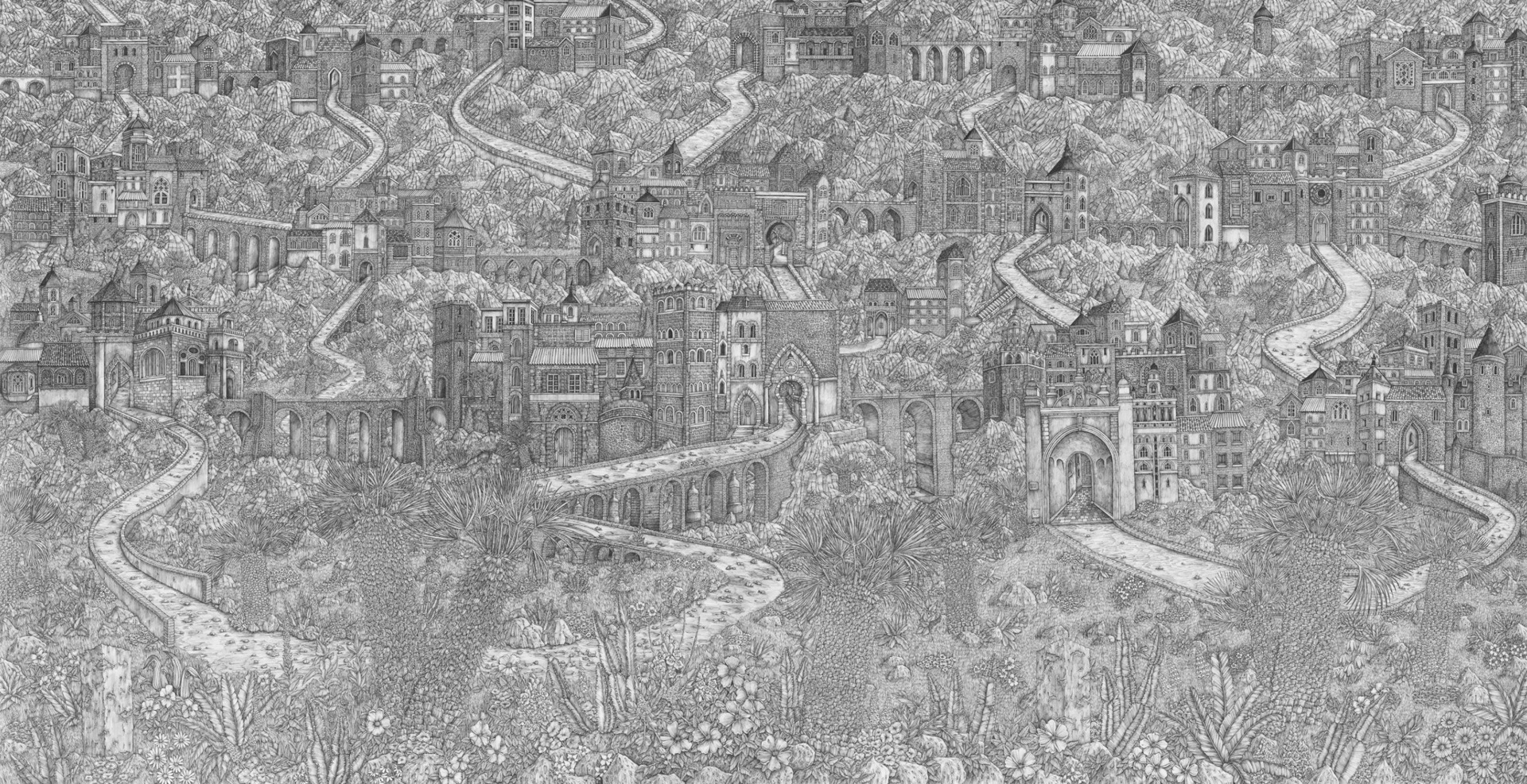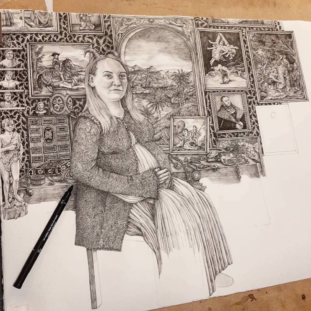 הקומפוזיציות מלאות בפרטים ובטקסטורה במקום בצבע. גישה קפדנית זו לאיור, מזכירה מאסטרים ישנים וציורים קלאסיים, כמו רובנס, דירר וברויגל