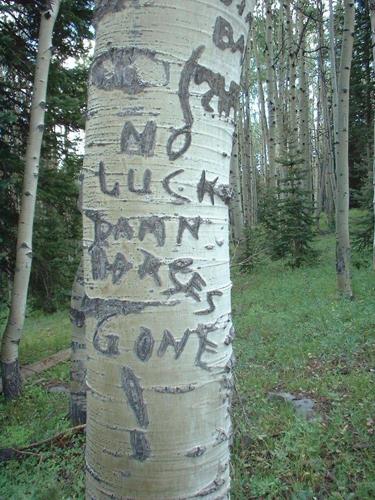 מתישהו בסוף שנות ה-70, בזמן שרכבה על סוסה דרך השממה הדרום-מערבית של קולורדו, פגי ברגון הבחינה במשהו שמשך את עינה, על עצי האספן: כיתובים חרוטים על הגזעים הלבנים, אשר היו שונים מהגילופים הגדולים והשחורים של לבבות וראשי תיבות, שפוצעים עצים וחושפים אותם למחלות.