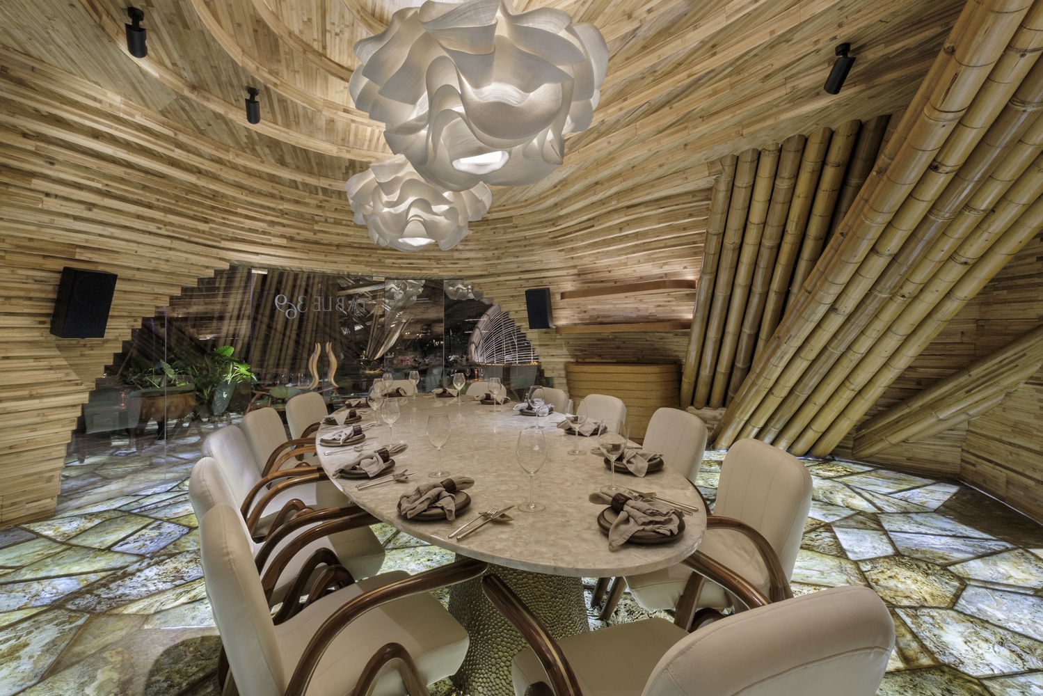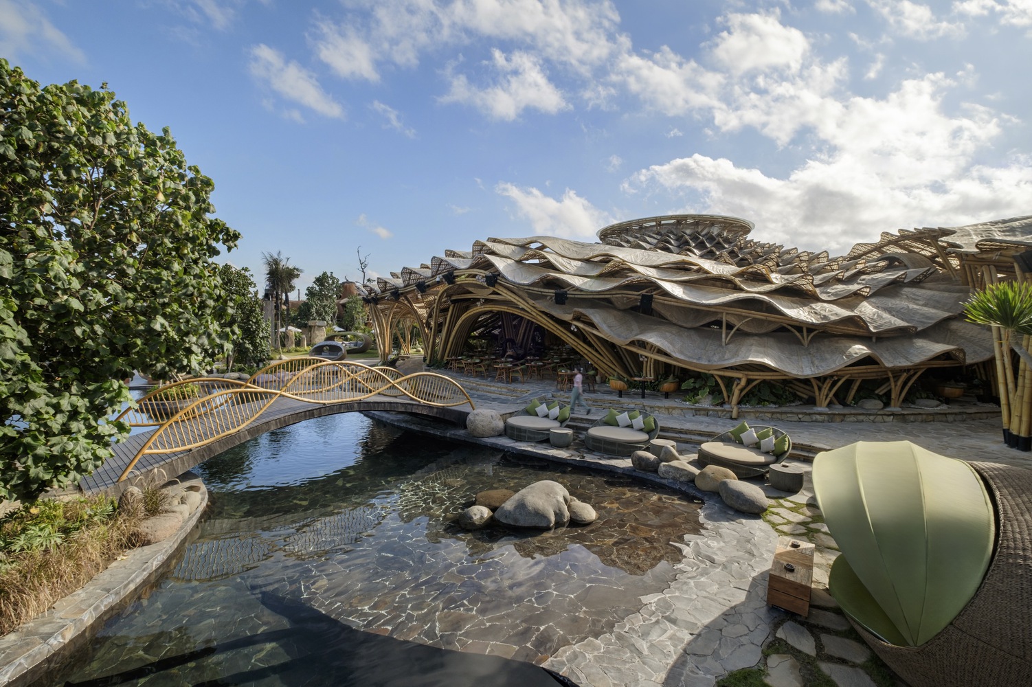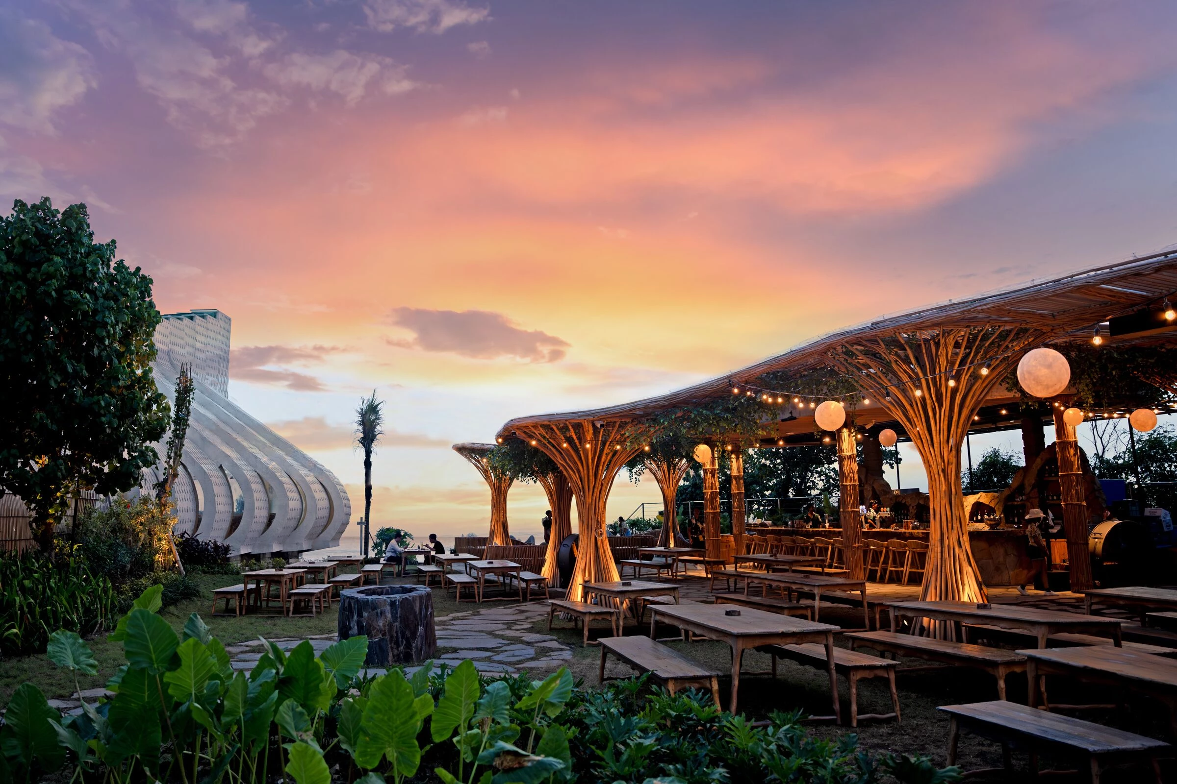 הפרויקט שם דגש על קיימות וחדשנות: שימוש בבמבוק, בזלת, פנלים מרוכבים, אבן טבעית, עץ ממוחזר וגגות ירוקים. לראשונה בעולם יושמה כאן מערכת קונסטרוקטיבית משולבת של במבוק ובזלת, לצד שימוש נרחב בממברנה שקופה לקירוי ומבנים מורכבים שנבנו ללא בטון.