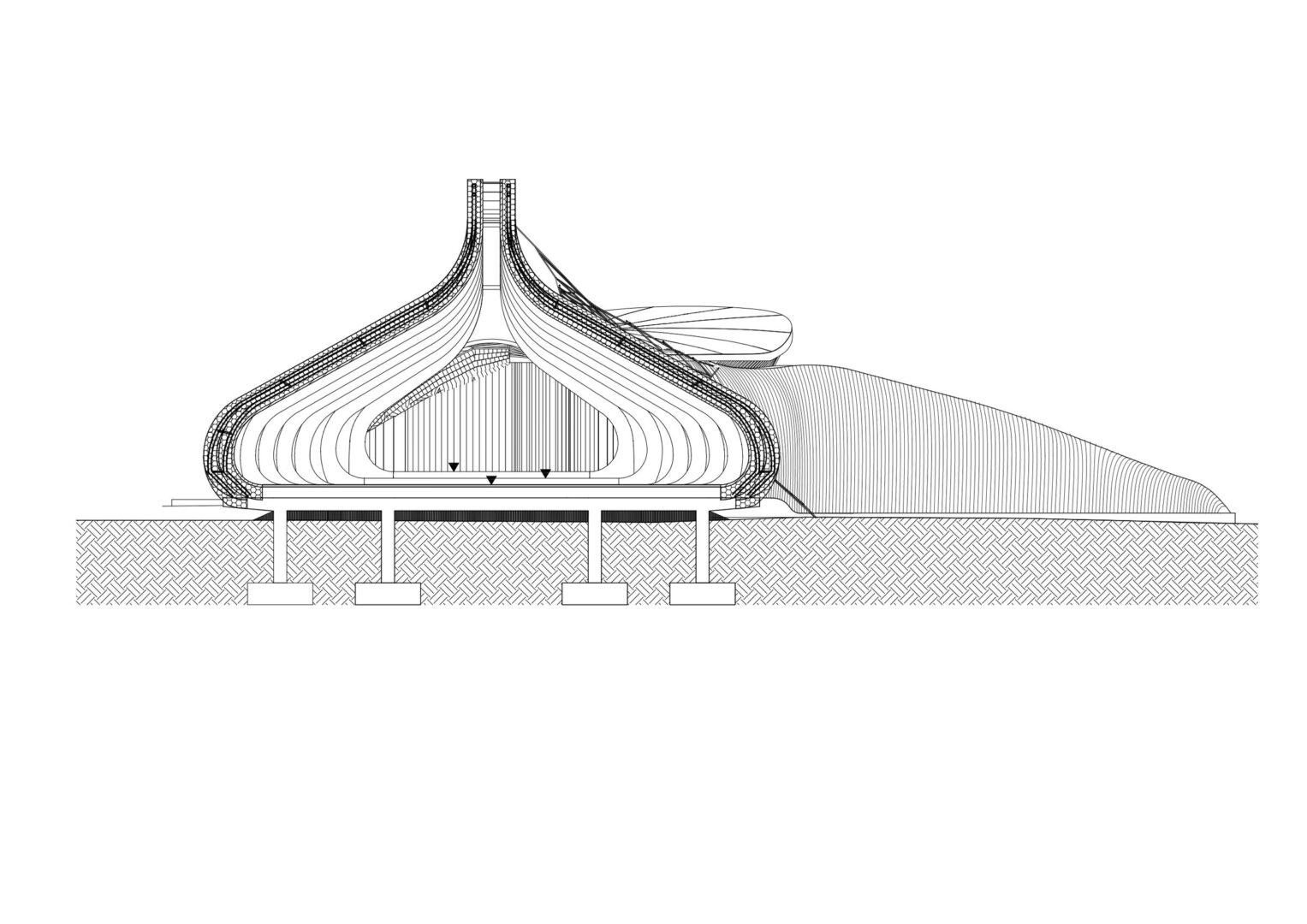 כך נוצר מתחם שמצליח לארח פסטיבלים, הופעות ותערוכות בקנה מידה גדול – תוך שמירה על המיקרו־אקלים, הצמחייה והטופוגרפיה של האתר. אדריכלות אורגנית, ניסיונית ופורצת דרך – שממש צומחת מתוך הקרקע.