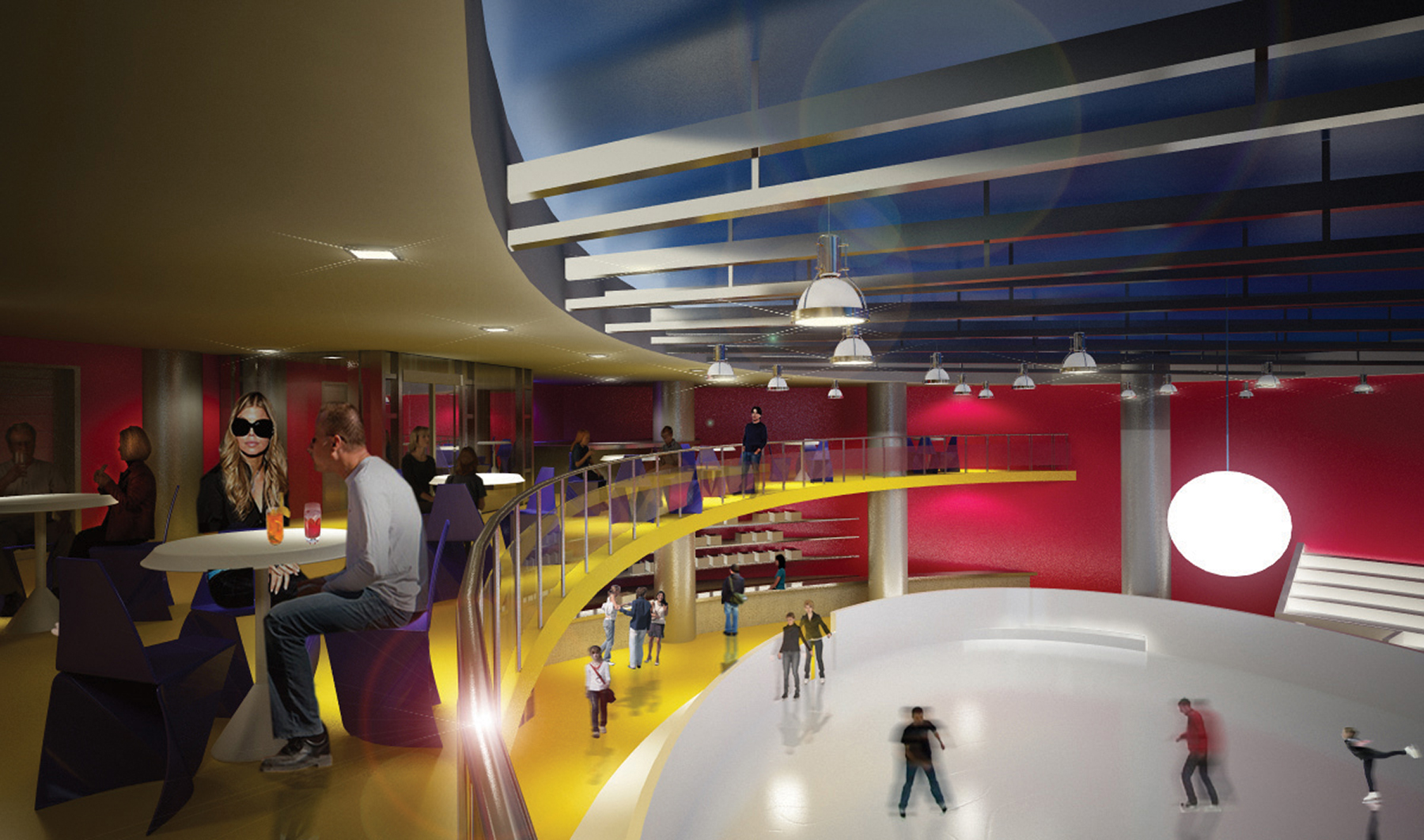 בתמונה: חללים גדולים רב תכליתיים יאפשרו מגוון עצום של אירועים קבועים ומשתנים; מוסיקה, מחול, אמנויות הבמה, ברים, מסעדות, גלריות, ואף תעסוקה. החללים יאכלסו אירועים ציבוריים ופרטיים, המוניים ואינטימיים, אירועי תרבות קצה כמו גם אירועים לכל המשפחה. למעשה, כל מה שלא מוצא מקום בעיר הקונבנציונאלית יוכל למצוא את מקומו כאן.