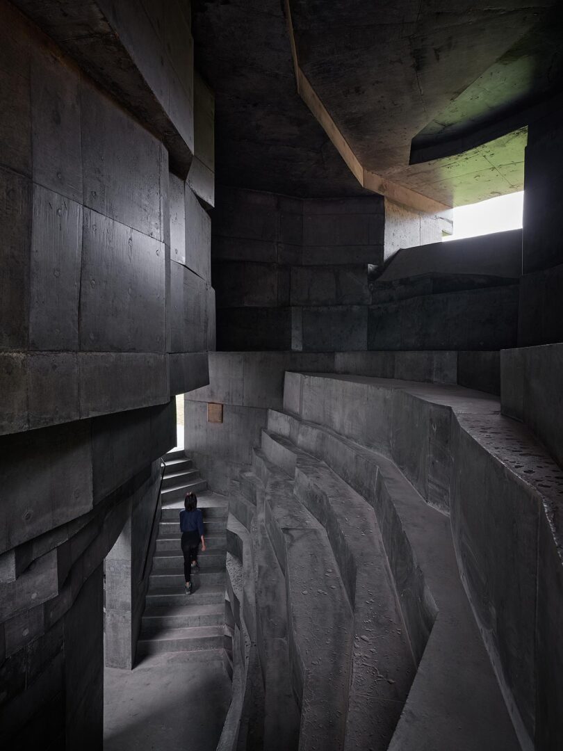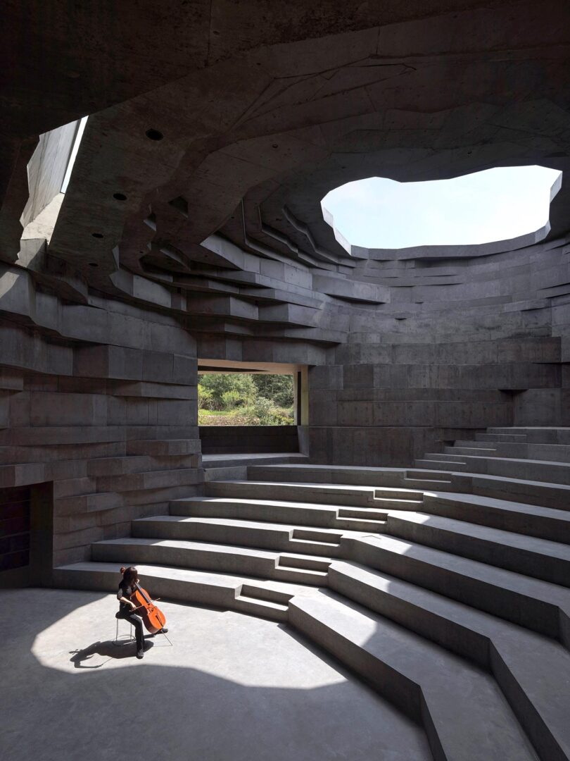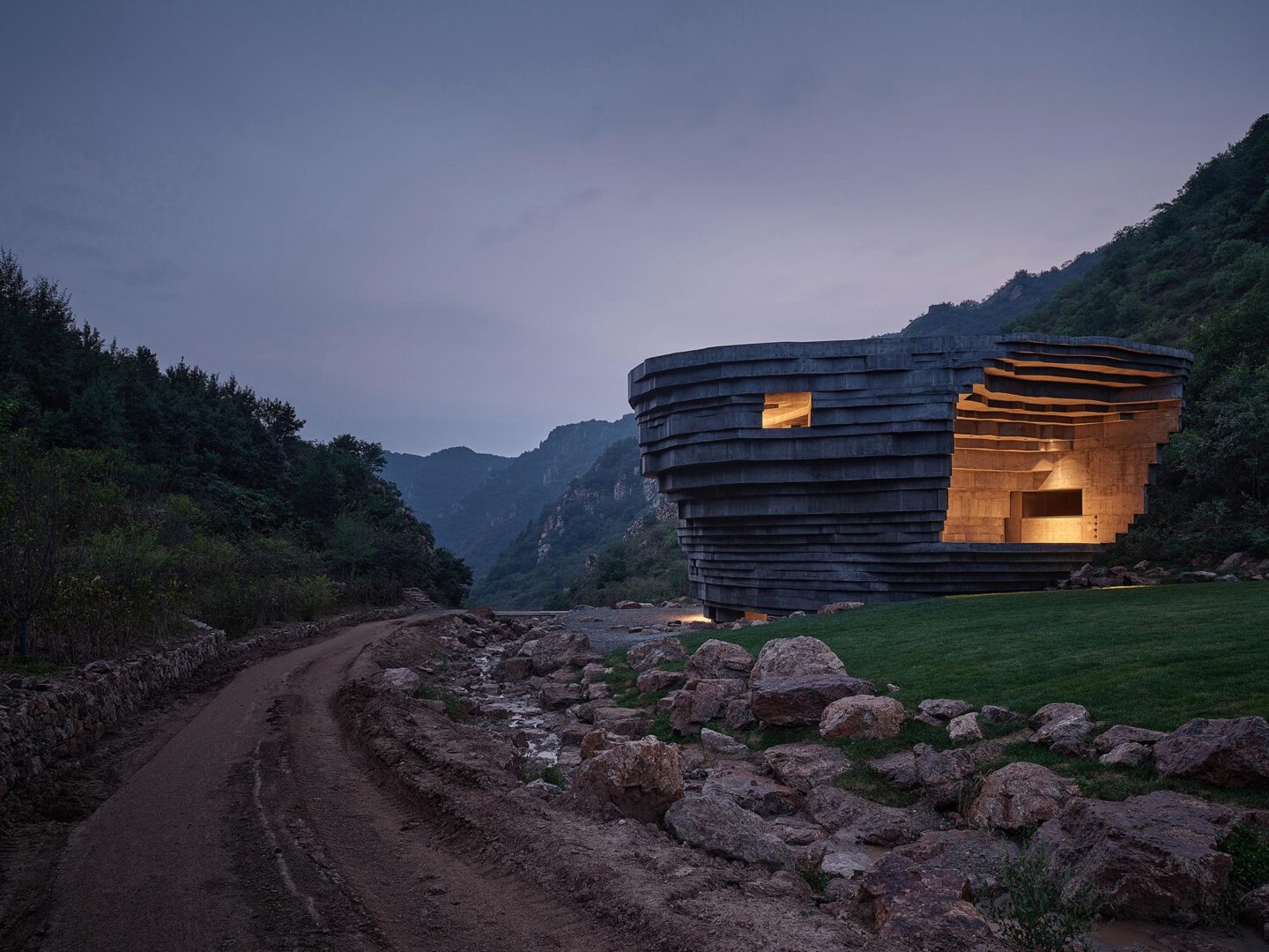 אולם הקונצרטים "Chapel of Sound" שתכננו OPEN Architecture ליד החומה הסינית מחוץ ל-Beijing יוצר קשר סימביוטי עם סביבתו: עיצובו המונוליתי כערימת סלעים שטוחים, ממוקם בצורה מושלמת בתוך עמק הררי, נראה כאילו הוא צומח מתוך האדמה ומעצב את עצמו באופן אורגני.