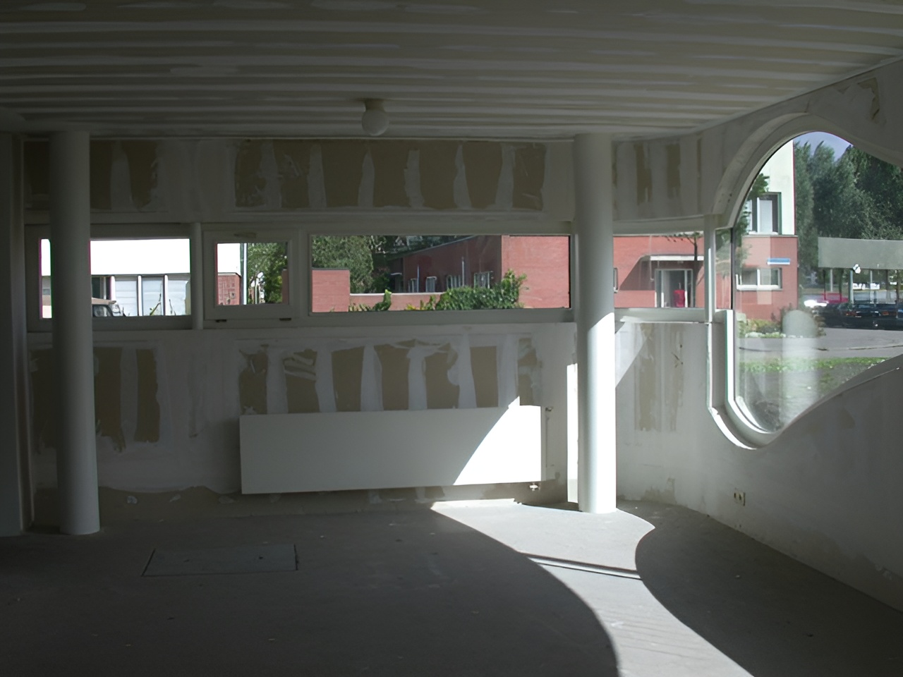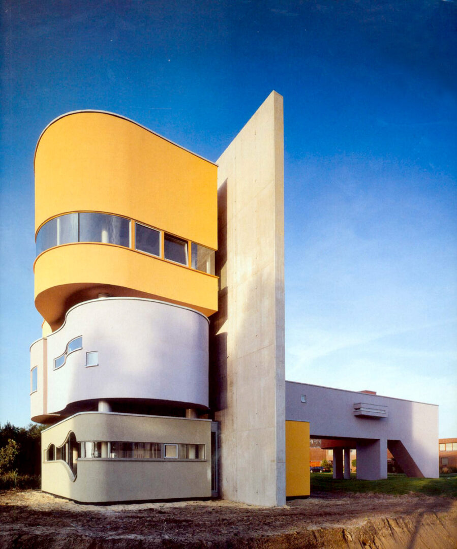 החללים עצמם מפורקים לצורות נפרדות: נפחים מעוגלים המכילים חדר שינה, סלון ופינת אוכל נערמים זה מעל זה לצד הקיר, בעוד מסדרון אופקי מוביל לחלל עבודה נפרד. במקום בית כיחידה אחת, מתקבלת קומפוזיציה של אובייקטים – כמעט ציור תלת־ממדי.