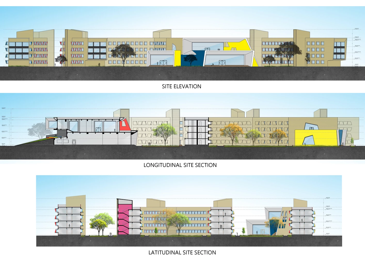 הפריסה האורגנית של הבניינים מאפיינת כל חלל באתר. צבע מדגיש בלוקים שונים ומקל על המרחב הפנימי. כל בלוק צבוע בצורה שונה יחד עם הפנים של חלונות המפרץ של ההוסטל בצבעים בהירים ליצירת זהות.