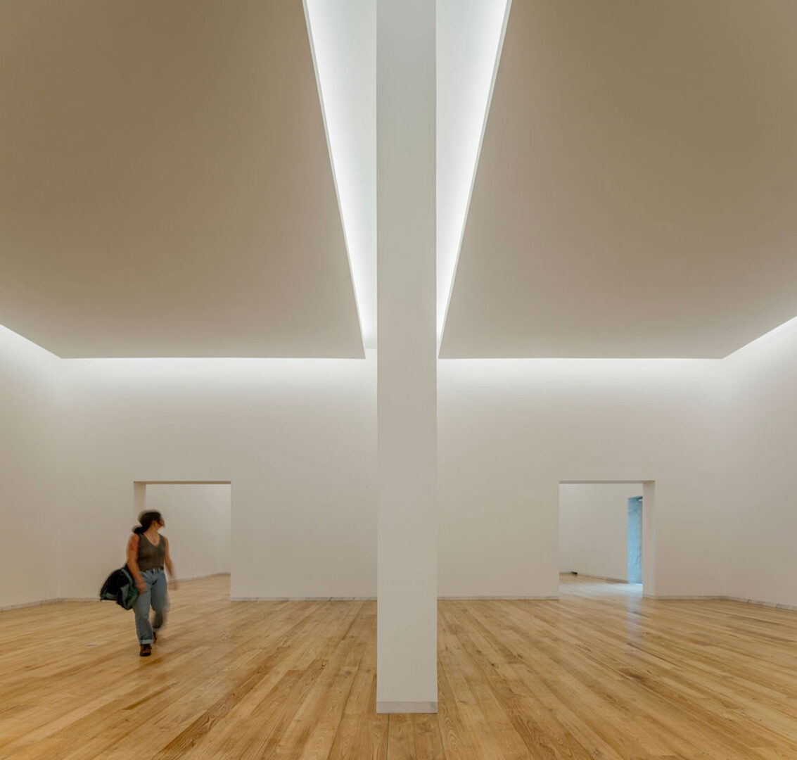 אור טבעי חודר דרך חלונות גג מבטון יצוקים באתר, ומאירים