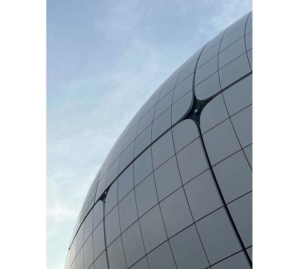 הפרויקט בולט גם בשיטות הבנייה המתקדמות שלו. נעשה שימוש בטכנולוגיות כמו DfMA ו-OSC, המאפשרות ייצור מדויק מחוץ לאתר והרכבה מהירה בשטח. חזית המבנה מורכבת מ-3,422 פאנלים בעיצוב גיאומטרי, שיוצרו באמצעות מודלים תלת-ממדיים, חיתוך CNC וריתוך רובוטי — שילוב שהבטיח דיוק מרבי גם בצורות המורכבות.