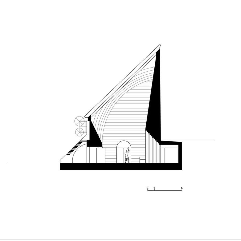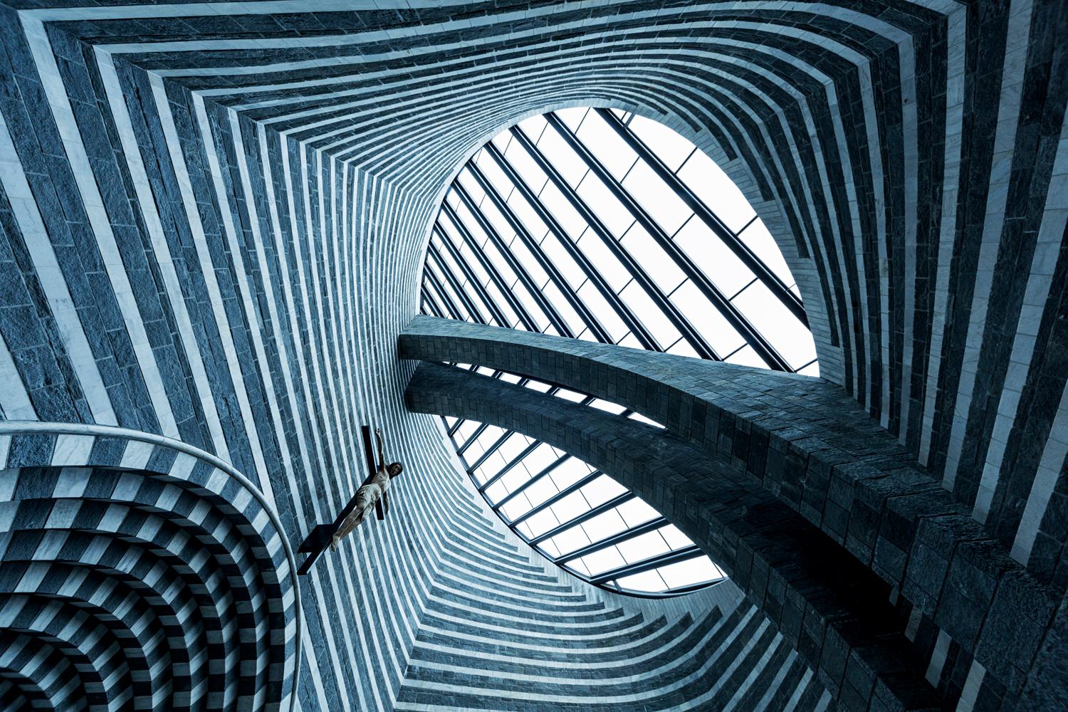 החתך החיצוני דוחס את החלל הפנימי ומאלץ אותו להתפשט לכיוון השמיים. השמים נפתחים מעבר לגג הזכוכית ומקרבים את המתפלל אל האלוקי.