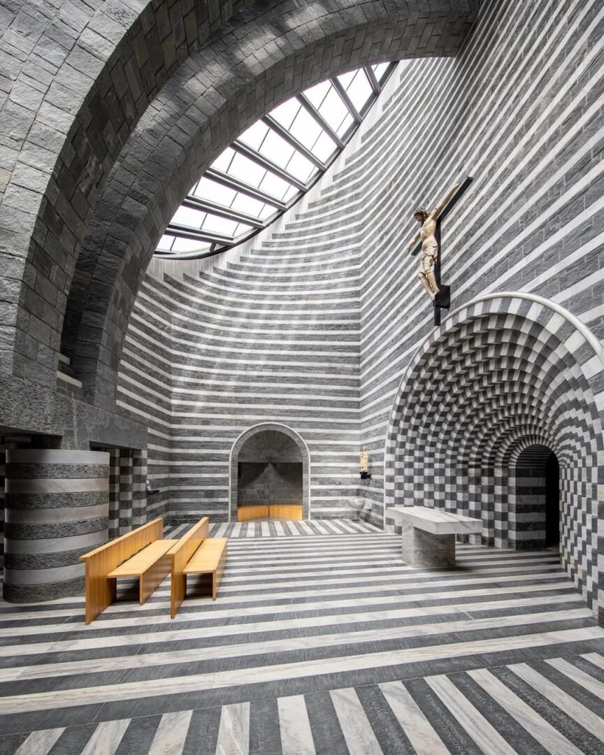 בשנת 1986 פגעה מפולת שלגים בכפר השוויצרי הקטן מוגנו, כשהיא משטחת את הכנסייה מהמאה השבע-עשרה של הכפר. האדריכל Mario Botta הוזמן לתכנן מחדש את הכנסייה San Giovanni Battista Church.
