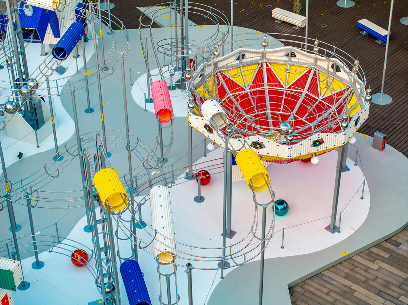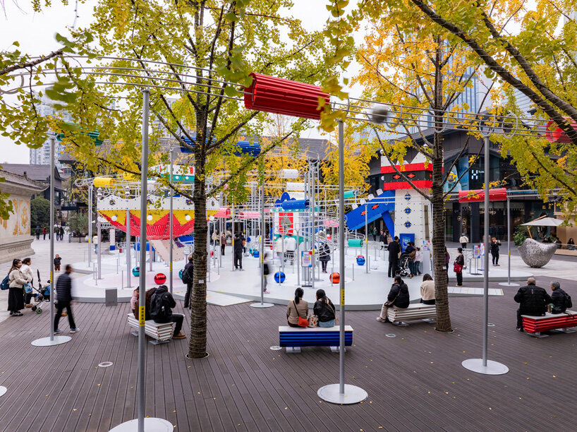 בהתבסס על רעיונותיו של אלדו רוסי לגבי אדריכלות כמאגר של זיכרון קולקטיבי ומהדהד את רוחו של לונה לונה, פארק השעשועים האמנותי של המבורג משנת 1987 שהפך יצירות של אמנים כמו קית' הרינג וסלבדור דאלי לחוויות ציבוריות שובבות, המיצב הציבורי ממסגר את האדריכלות ככלי לשמחה, השתתפות ופליאה יומיומית. הכיכר מוקפת בעצי גינקו ובריכת השתקפות רדודה, חלל שהופך לתפאורה ליצירת אמנות זמנית בכל עונת חגים. האתר מכיל מסילות חופפות הנארגות סביב חמישה מבנים מיניאטוריים, ויוצרות סביבה רב-שכבתית שמבקרים יכולים ללכת דרכה, לצפות בה ולהתגורר בה. כל בניין מתפקד הן כפסל עצמאי והן כצומת מרכזי בתוך המערכת הקינטית, ומנתב מחדש את הכדורים המתגלגלים ומשנה את מהירותם כשהם עוברים דרכם.