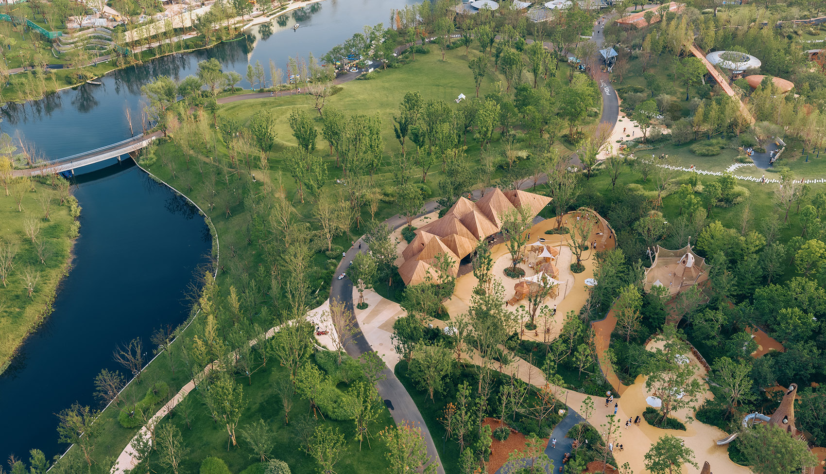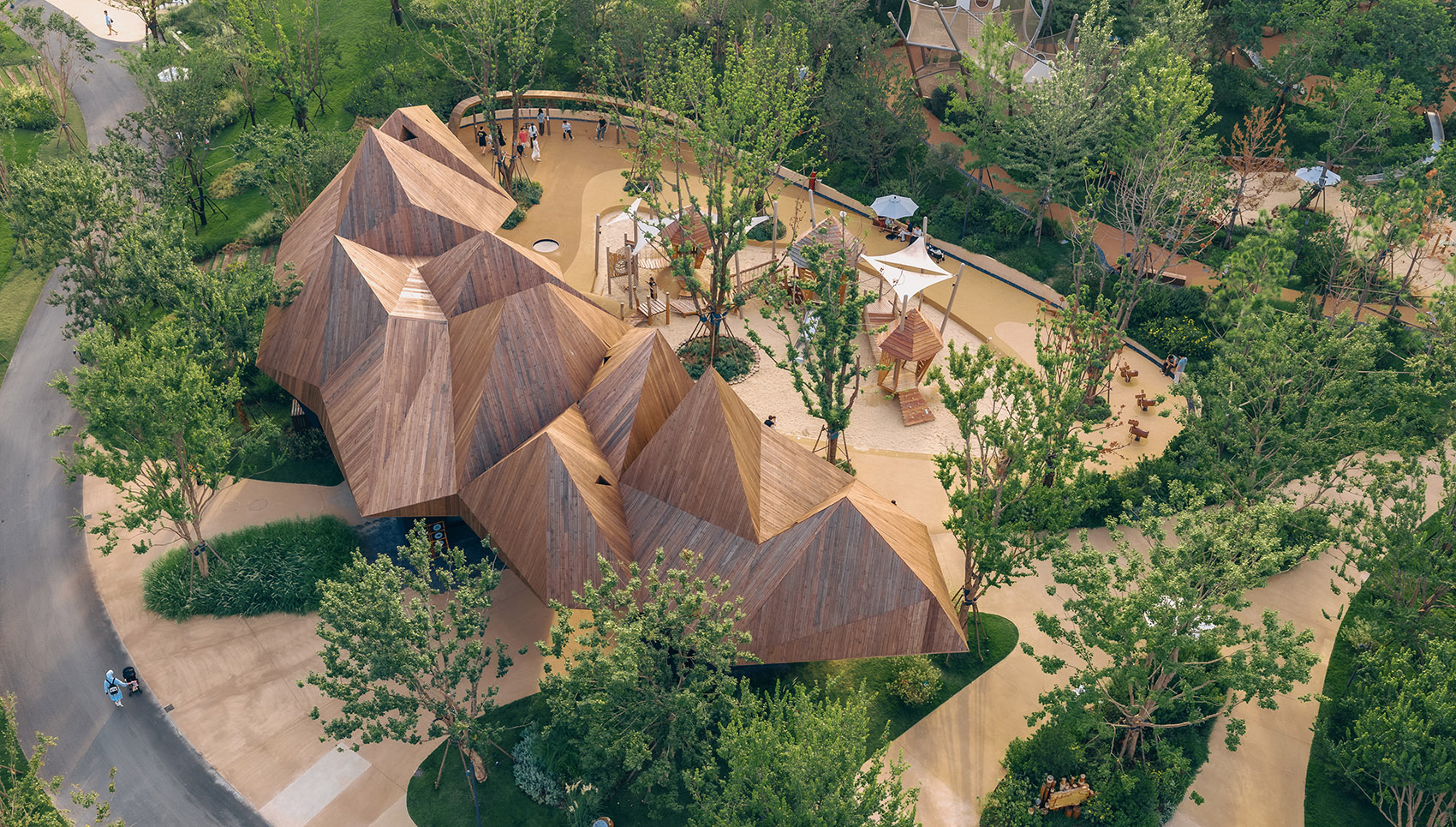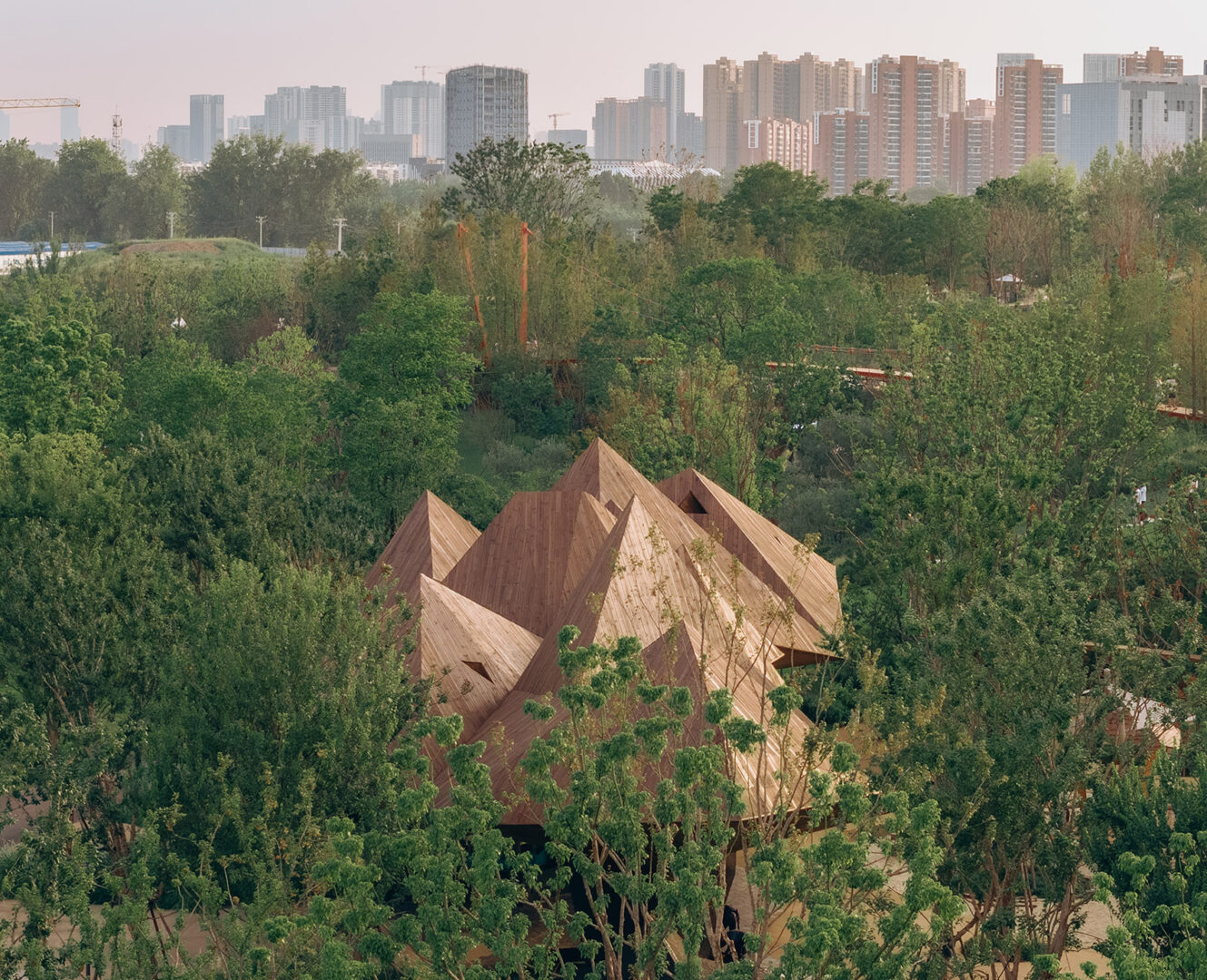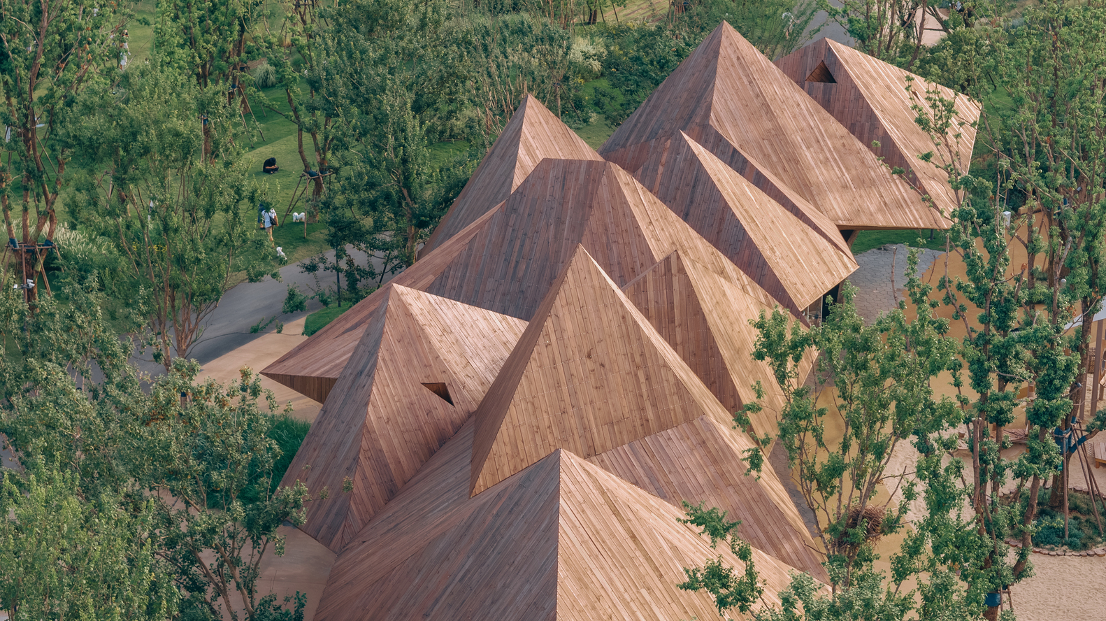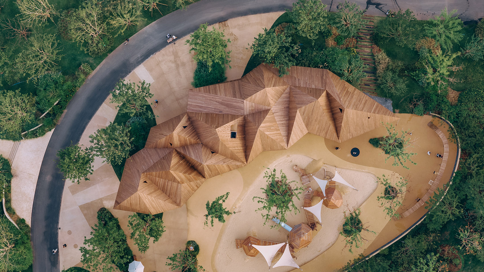מסעדת LuxeIsland שעיצבו DL Atelier בווהאן שבסין, ממוקמת בתוך גן שעשועים לילדים. בתחילה המסעדה נקראה "הבקתה האמיצה". מטרת המתכננים הייתה ליצור מרחבים מרווחים, חצי-חיצוניים, שבהם מבקרים יוכלו להירגע בצל. בנוסף, הודות למיקומו הבולט בשער האי, הבניין נראה מרחוק למבקרים המגיעים. "פשוט רציתי ליצור הר - הר קטן ורוקד", אומר האדריכל.