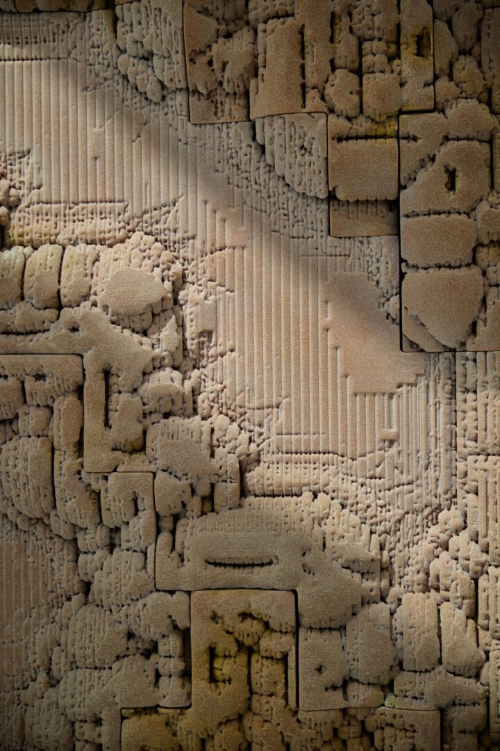 בלוקי חול מודפסים בתלת-ממד מפסלים חזית גמישה, שאחרי שהיא מתבלה, ניתן להשתמש מחדש בבלוקים ליצירת חדשים. לדברי וורק, ניתן ללטש את הקיר ולהדפיס אותו מחדש עד שמונה פעמים מבלי לפגוע בשלמותו המבנית. לקירות יש אסתטיקה ייחודית הודות למרקמים התלת-ממדיים המורכבים. וורק השתמש בבינה מלאכותית גנרטבית כדי לעצב את המשטחים התלת-ממדיים הללו, תוך חיקוי תהליכי שחיקה טבעיים. הקירות אצלו מורכבים מסדרה של פאנלים מודפסים בתלת-ממד תוך הוספת חומר מקשר נוזלי לשכבות הדקות של חלקיקים מודפסים.