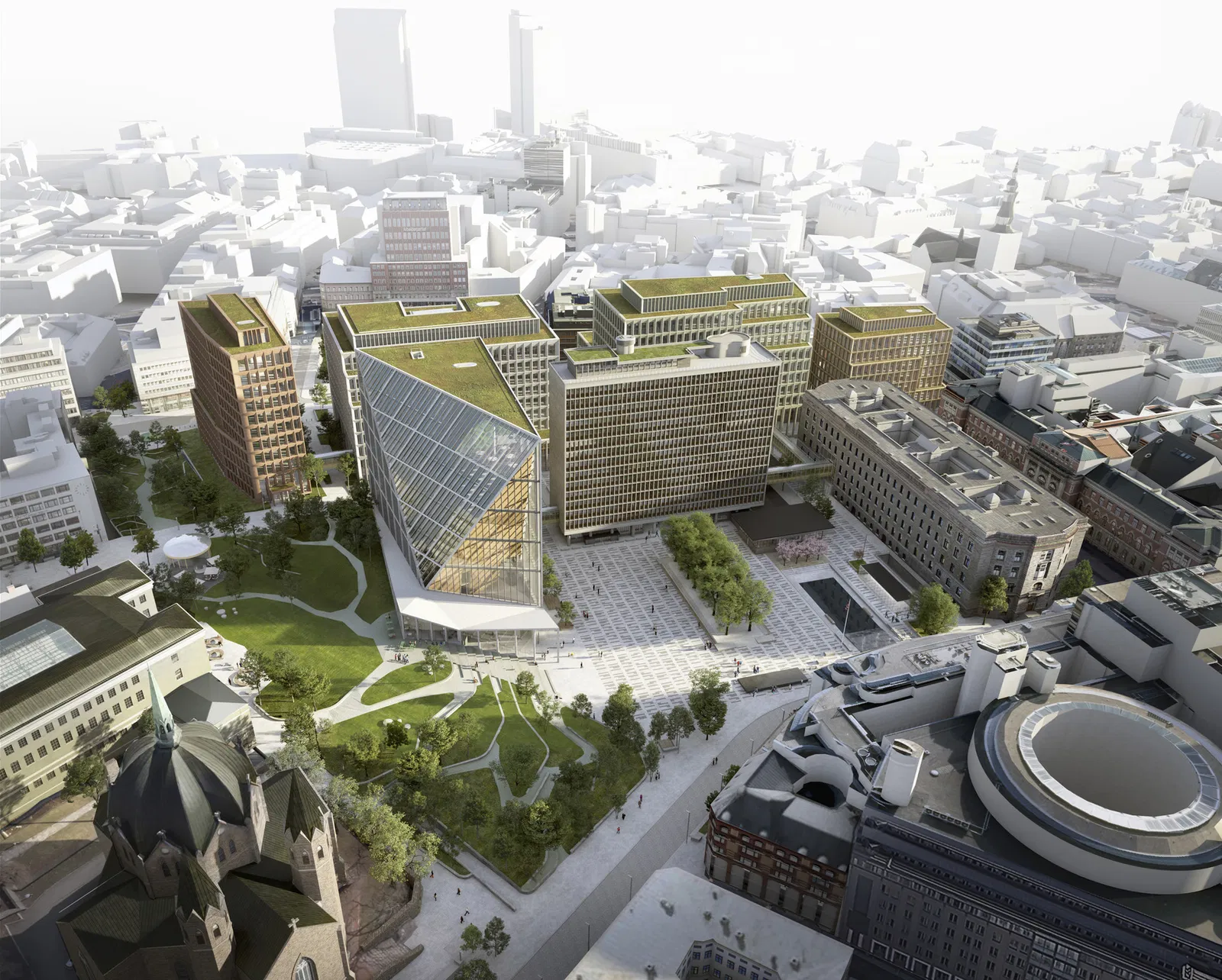 תכנית האב מארגנת חמישה מבנים חדשים ושני מבנים משוחזרים סביב רצף חללים ציבוריים, ומשלבת מחדש את המתחם במרכז ההיסטורי של אוסלו. שלב א’ כולל את שימור Høyblokken לצד הקמת A-block ו-D-block, היוצרים “חזית ציבורית” הפונה לעיר. רחובות שנחסמו נפתחו מחדש, כיכרות Johan Nygaardsvolds plass ו-Einar Gerhardsens plass חודשו, ונוצרו חיבורים חדשים להולכי רגל ורוכבי אופניים. בעתיד יוקם גם הפארק הציבורי Regjeringsparken בתכנון SLA ו-Bjørbekk & Lindheim.