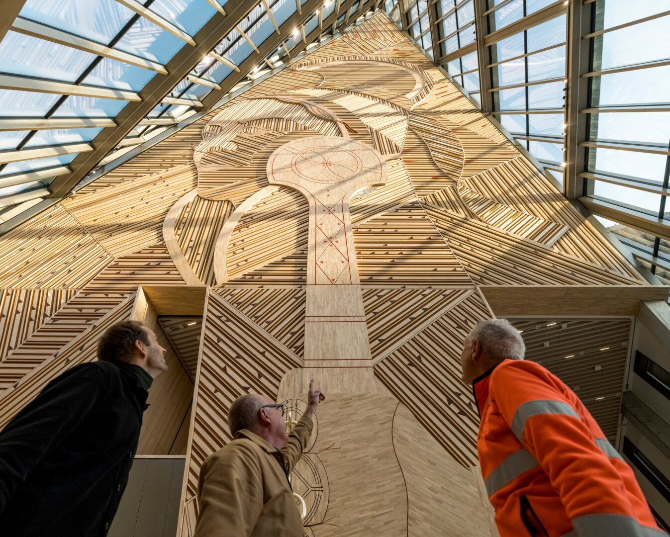 בלב השלב הראשון ניצב A-block, הכולל את Pyramid Hall – אטריום בגובה 51 מטרים המחופה עץ ומשמש כלובי וכמוקד סמלי. במרכזו מוצגת היצירה AAhkA (Mother Earth) של Outi Pieski, המתייחסת להיסטוריה הסאמית ולעתיד ילידי. גשרים ואזורים משותפים מחברים בין המשרדים במפלס הראשון ויוצרים “Collaboration District” המעודד עבודה בין-משרדית, לצד תכנון מודולרי וגמיש לטווח ארוך.