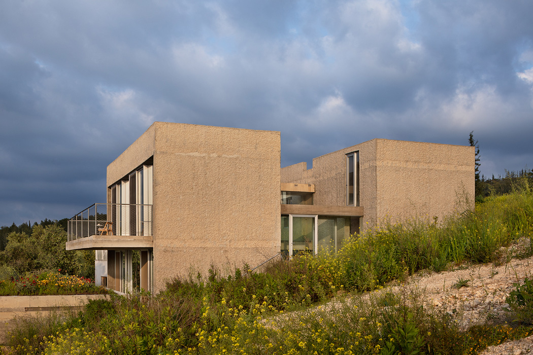 זו היא קוביה שפוצלה לשתי מסות וחצר ביניהן, המשמשת את המשפחה לחיים בלתי-פורמליים בחוץ, תוך שמירה על אינטימיות. המסות מתפקדות כאגפים, כשהראשון ביניהם מכיל את יחידת האורחים כשמעליה נמצאים חדרי שינה, והוא נטוע במדרון האדמה. האגף מתחבר במעברים/גשרים המרחפים וחוצים את החצר לרוחבה ומגיעים לאגף הסלון, המטבח וחדר האוכל, מעל סטודיו הפיסול של האמנית. אלו פונים בהתייחסות מיוחדת לנוף הנשקף מתוכם בשפע, ומעניק לכל חלל בתוך השלד את איכויות השימוש בזמן, מהזריחה לשקיעה ומה שביניהם.
