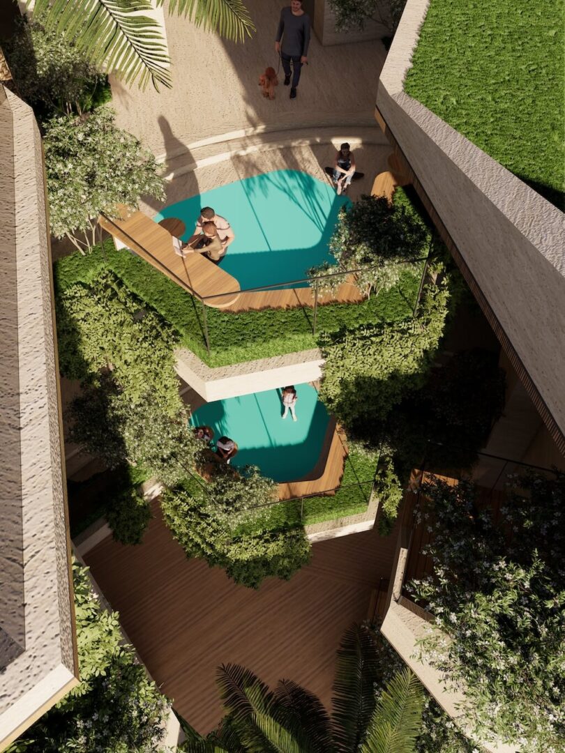 אחת מנקודות המוצא התכנוניות הייתה היעדר מגבלות צפיפות משמעותיות מעבר להגבלת הגובה – תנאי שעלול לייצר “ג’ונגל בטון” אינטנסיבי. בתגובה, מציע המשרד מודל קהילתי חדש המותאם לאקלים ולדפוסי החיים המקומיים, תוך איזון בין ערך כלכלי לטווח ארוך ואיכות מרחבית.