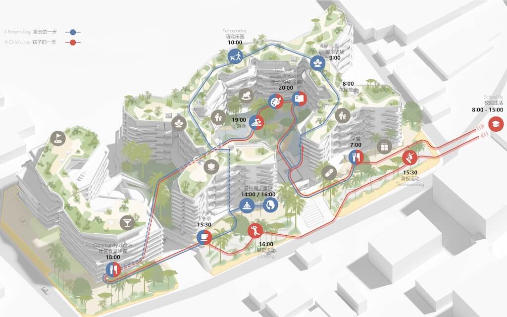 הקונספט נשען על רעיונות של סימביוזה והיברידיות: שילוב הדוק בין מבנים לצמחייה, ותמהיל שימושים הכולל מגורים, משרדים ומסחר – מודל רווח בקהילות המקומיות, המאופיינות בפעילות לאורך כל שעות היממה.