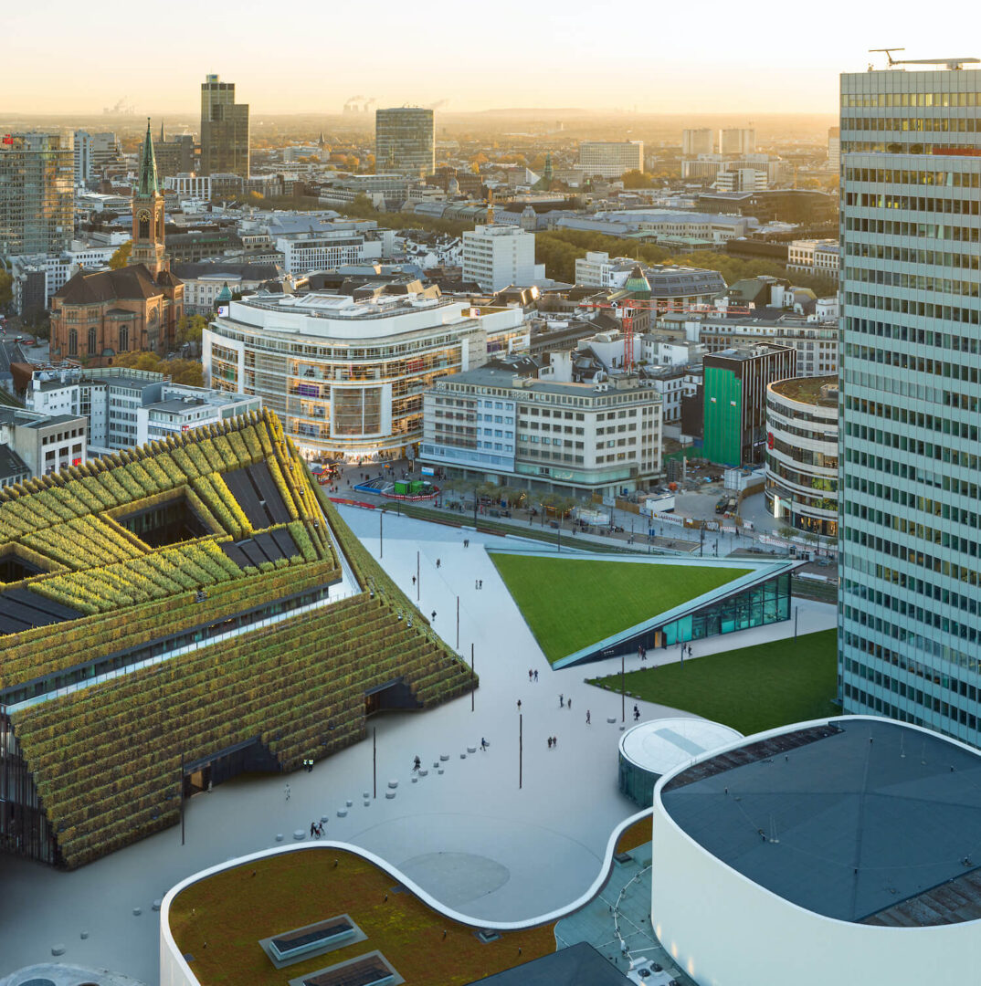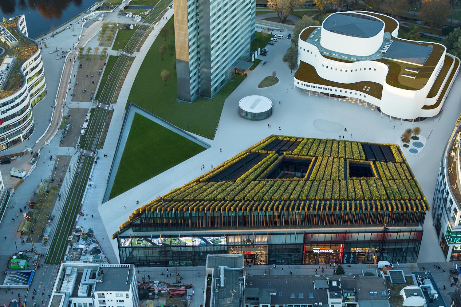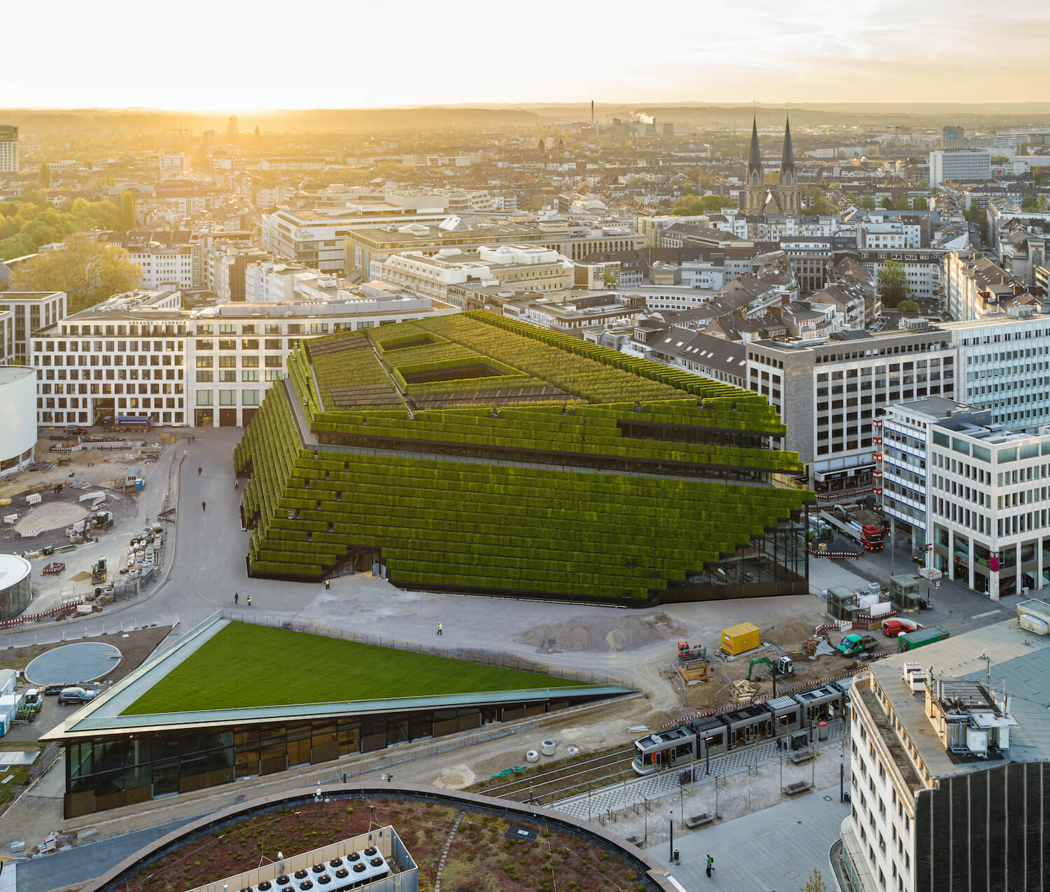 Kö-Bogen II, שהושלם בשנת 2020, ממוקם ליד הפארק המרכזי של דיסלדורף ורחוב Schadowstraße, אחד מרחובות הקניות העמוסים ביותר בעיר. נפחו הייחודי "מרכך" על ידי המעטפת הירוקה השופעת העוטפת את חזיתותיו.