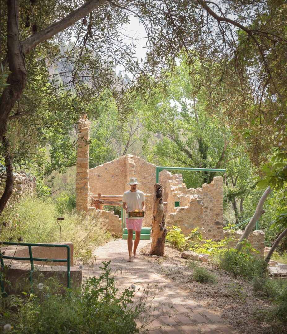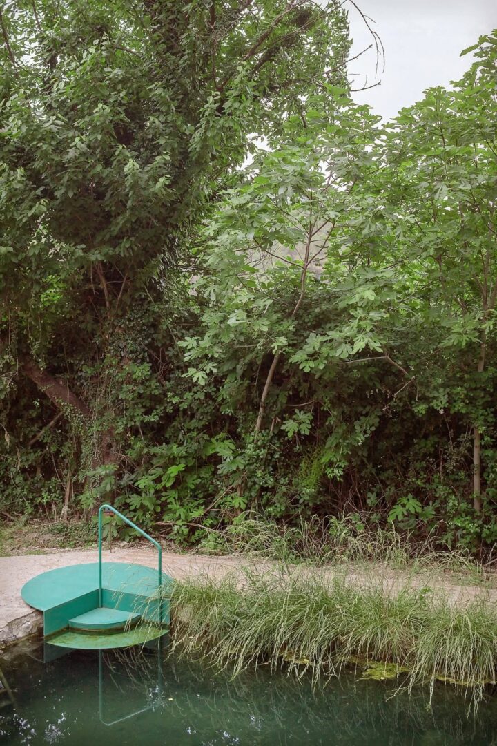 בתוך המבנה שולב חלל חצי־מקורה המציג כלים מסורתיים לייצור שמן זית, ומדגיש את ערכו ההיסטורי של המקום. לצד זאת, נוספו אלמנטים עדינים כמו ספסלים קרמיים, מדרגות ומערכת חבלים המאפשרת גישה למים – מחווה לשימושים המקומיים בעבר.