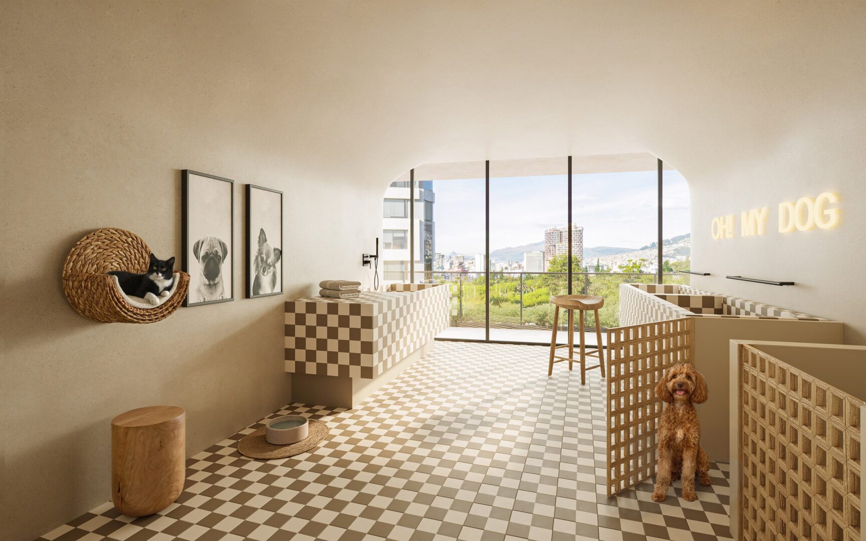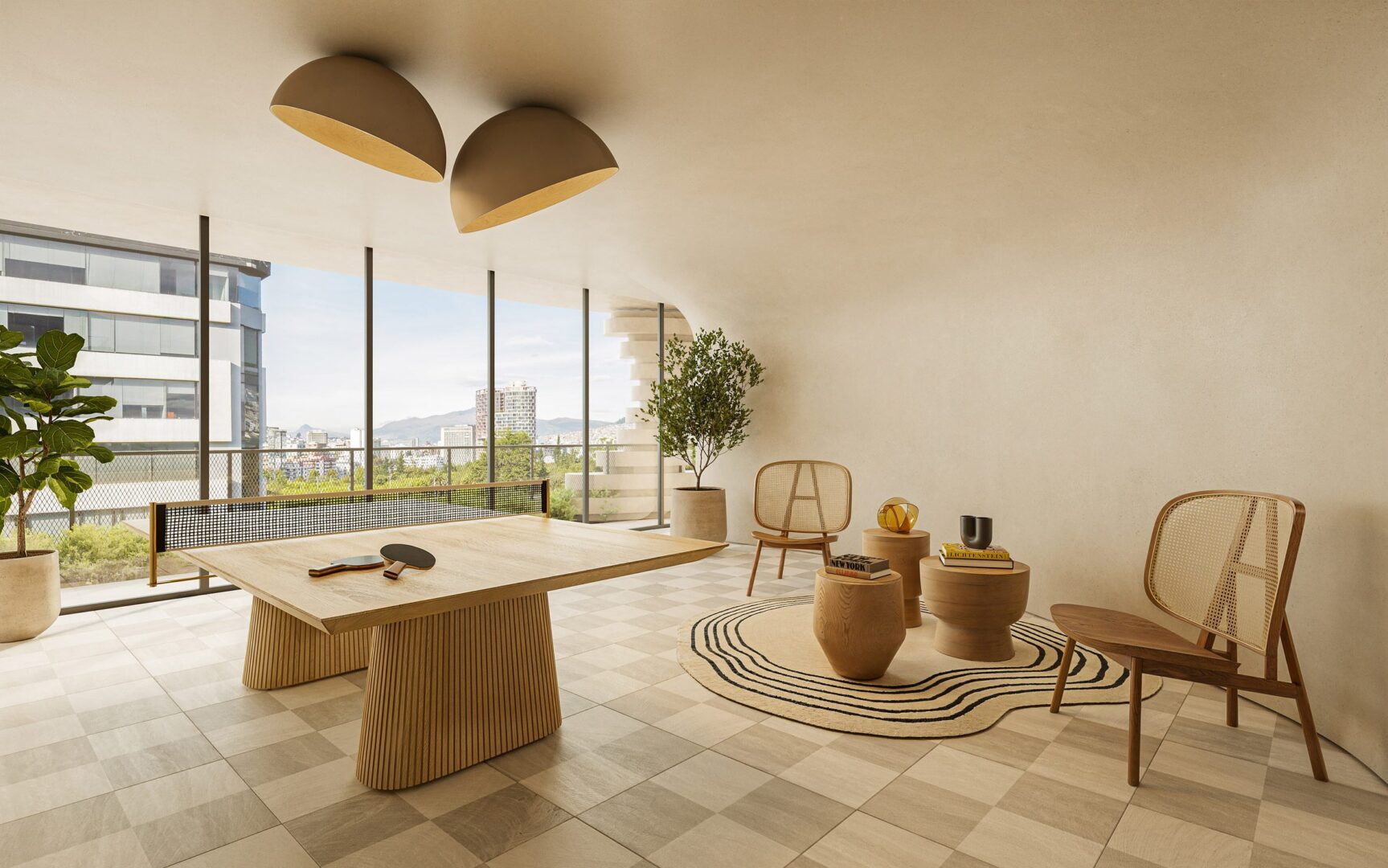 מגורים קומפקטיים עם עיצוב יוקרתי: הדמיות הפנים מציגות דירות קומפקטיות עם שימוש בעץ בהיר, לצד חללים ציבוריים רחבים ואורגניים. הפרויקט מכוון לשוק ההשכרה הקצרה ולמשקיעים, עם דגש על גמישות תכנונית ונוחות. בנוסף, ישולב בפרויקט מיצב פסיפס של המותג האיטלקי Fornasetti – עבודתו הראשונה בדרום אמריקה.