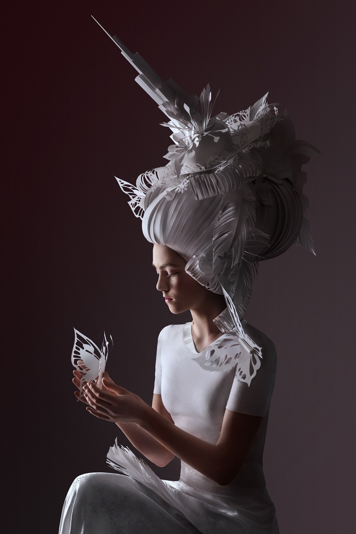 פאות הנייר של האמנית הרוסיה Asya Kozina, מחקות את התסרוקות של האצולה בתקופת הבארוק.