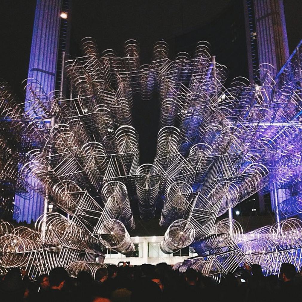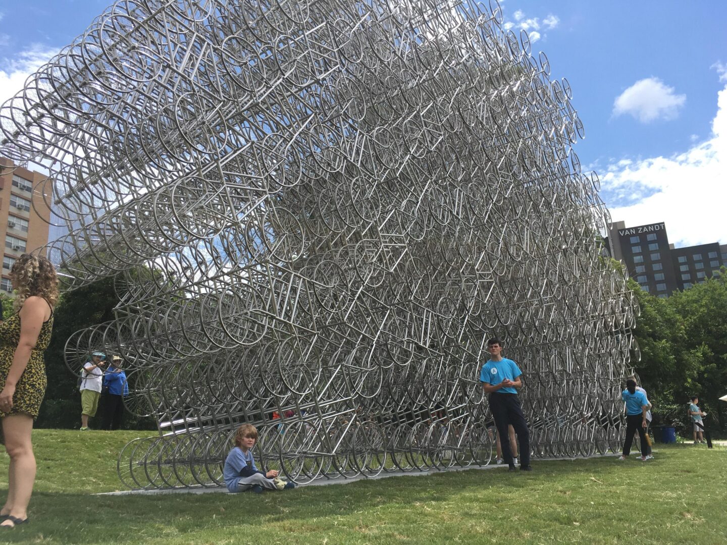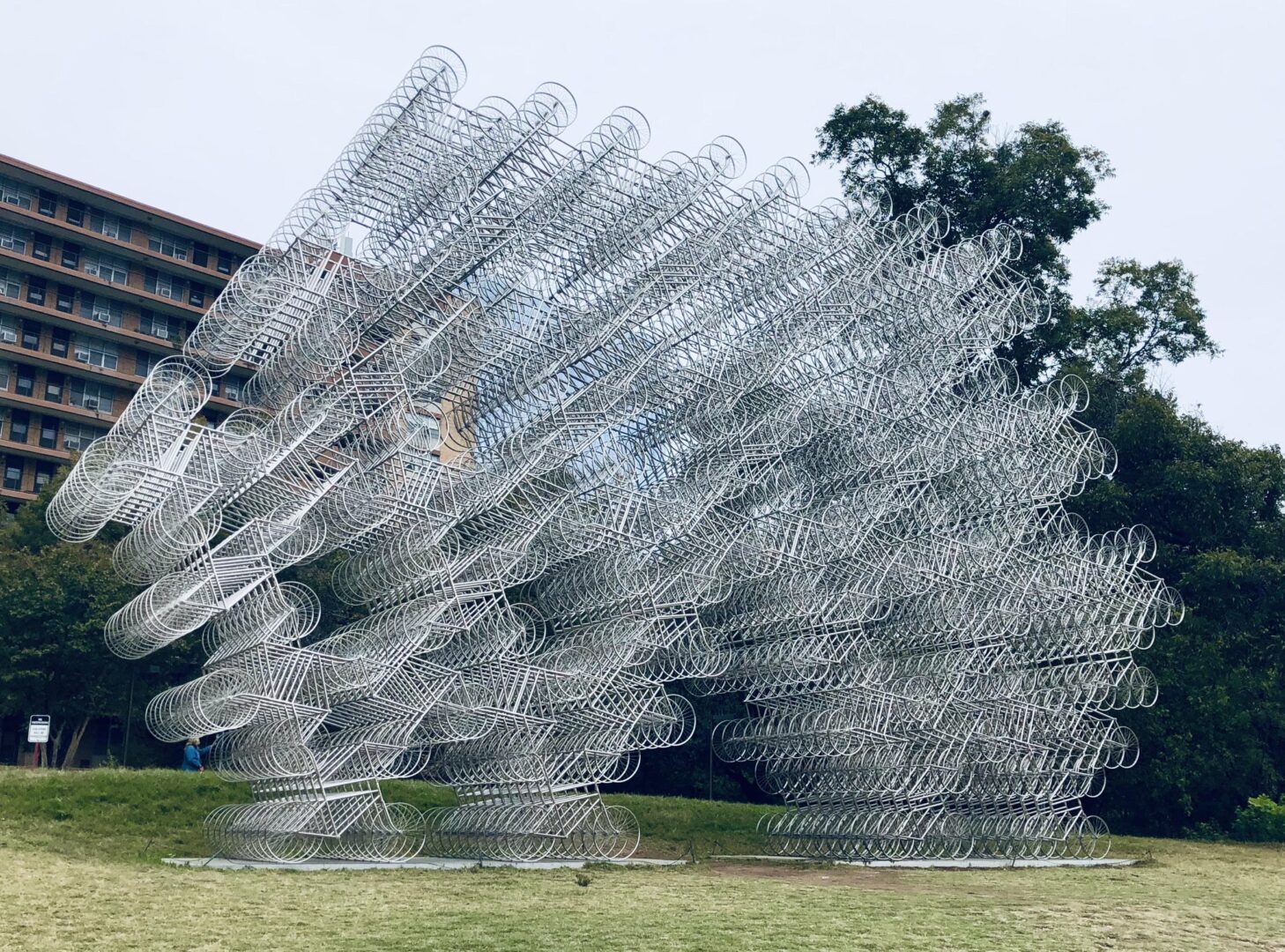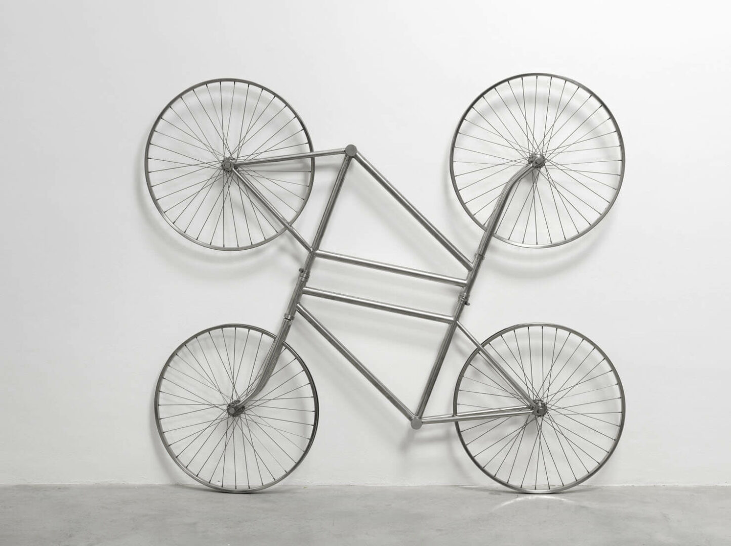 במיצב האייקוני של האמן הסיני Ai Weiwei, מאות אופניים זהים מחוברים זה לזה ויוצרים מבנה מרהיב, כמעט מהפנט.