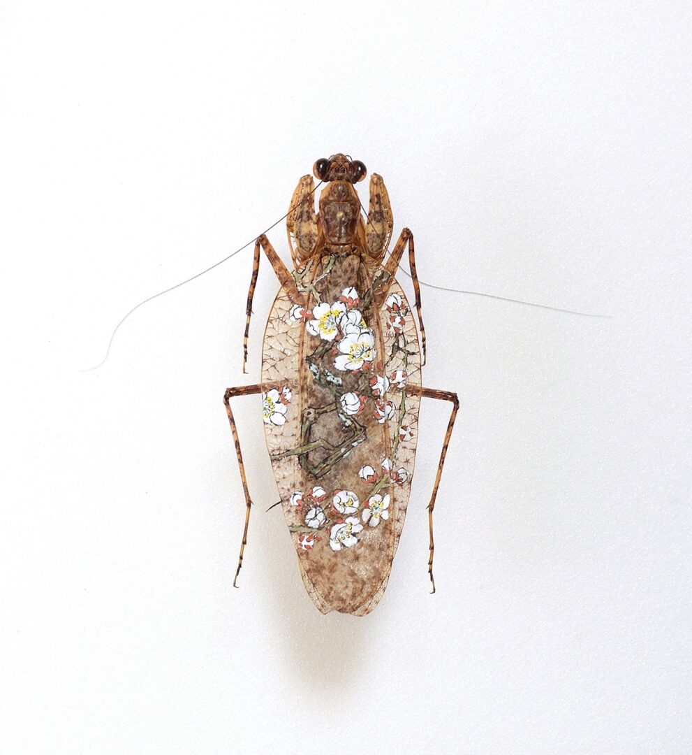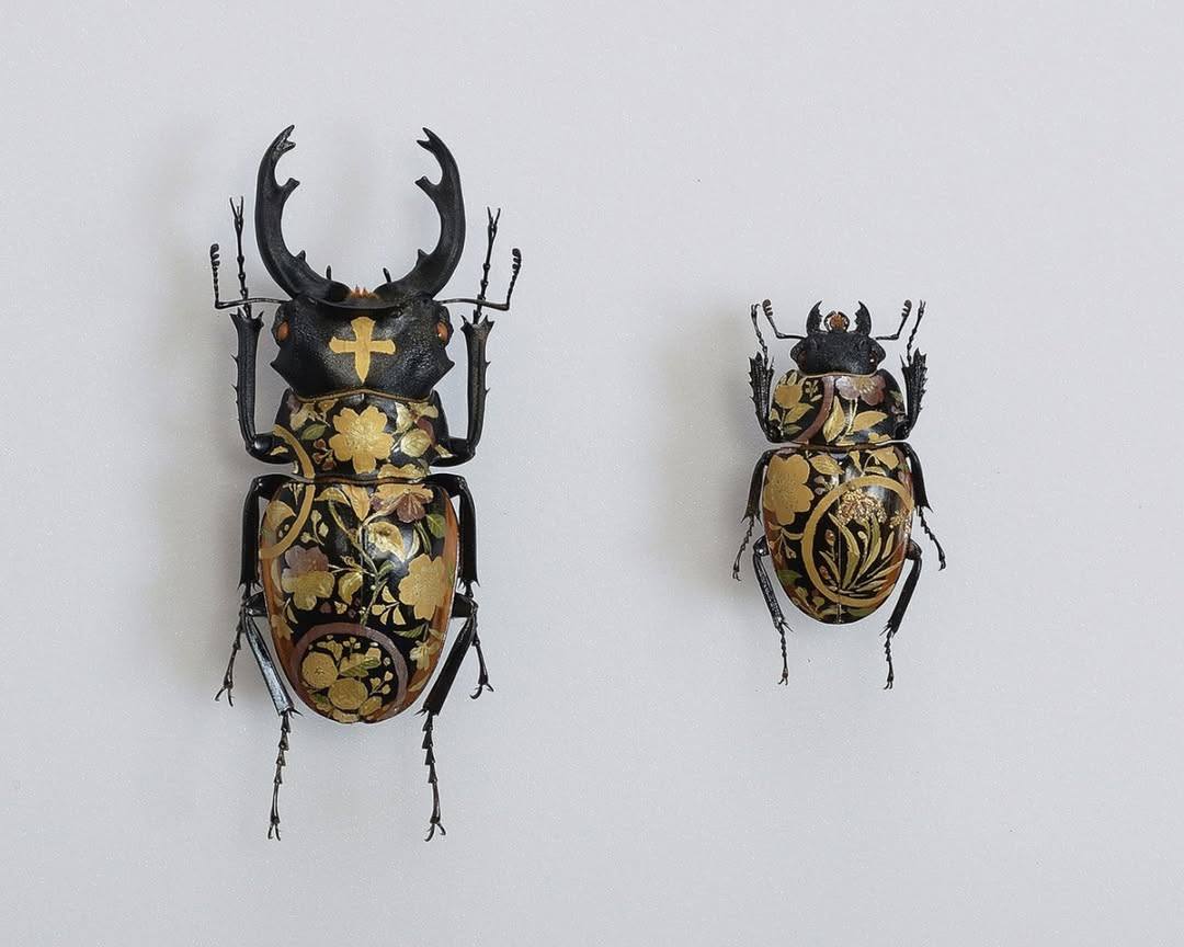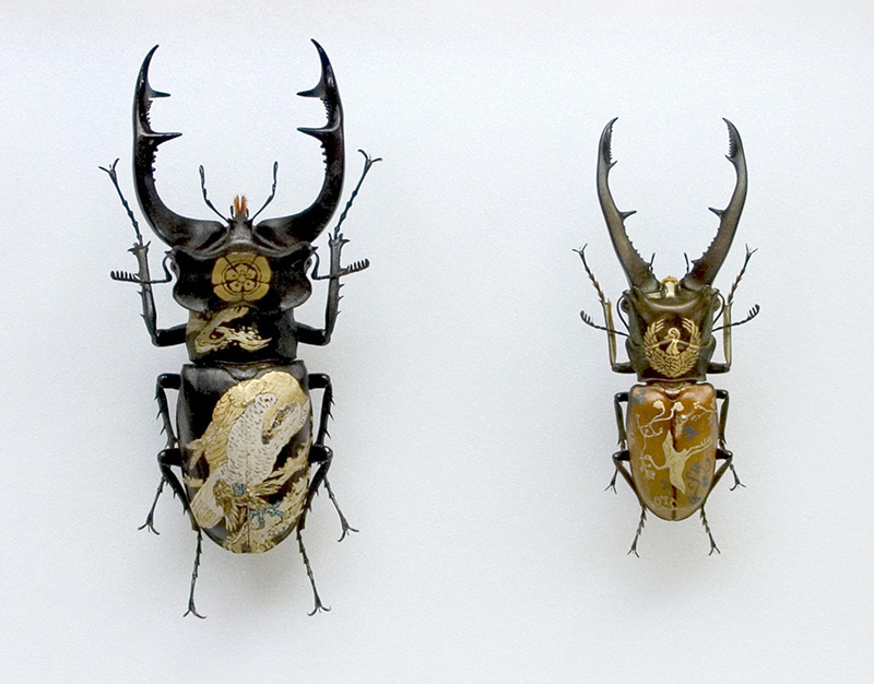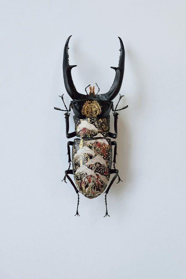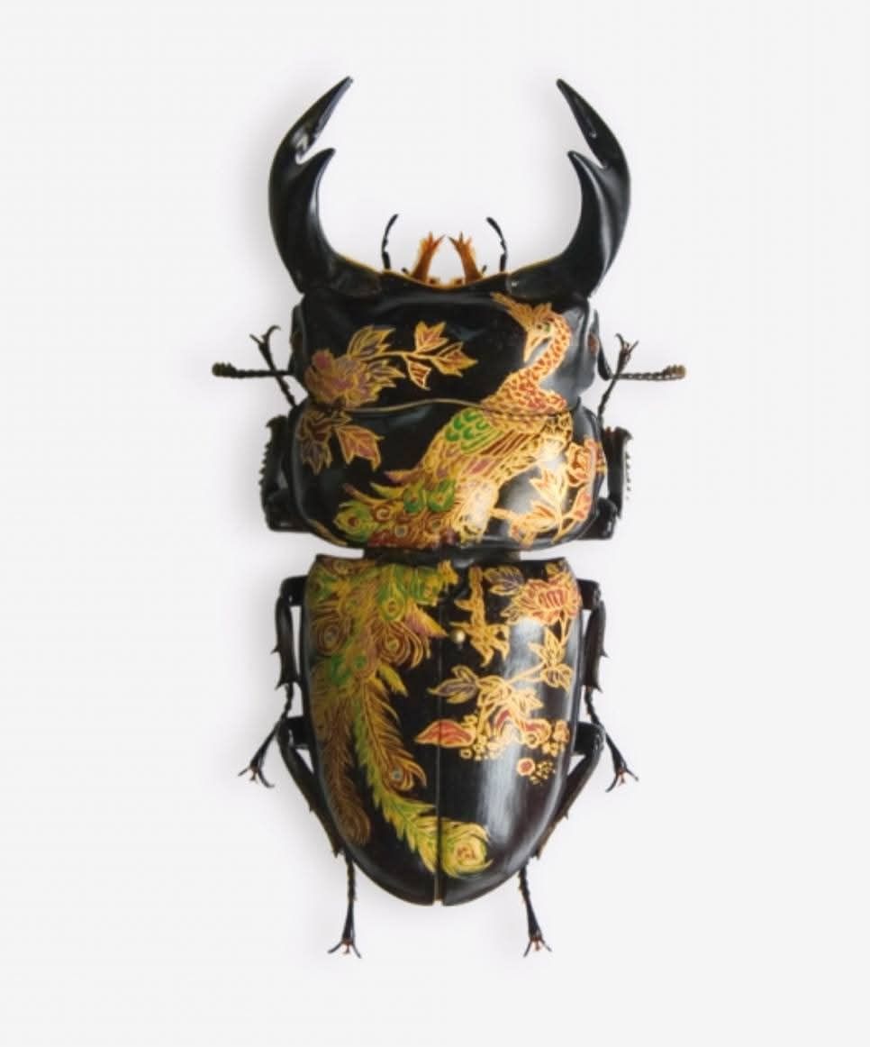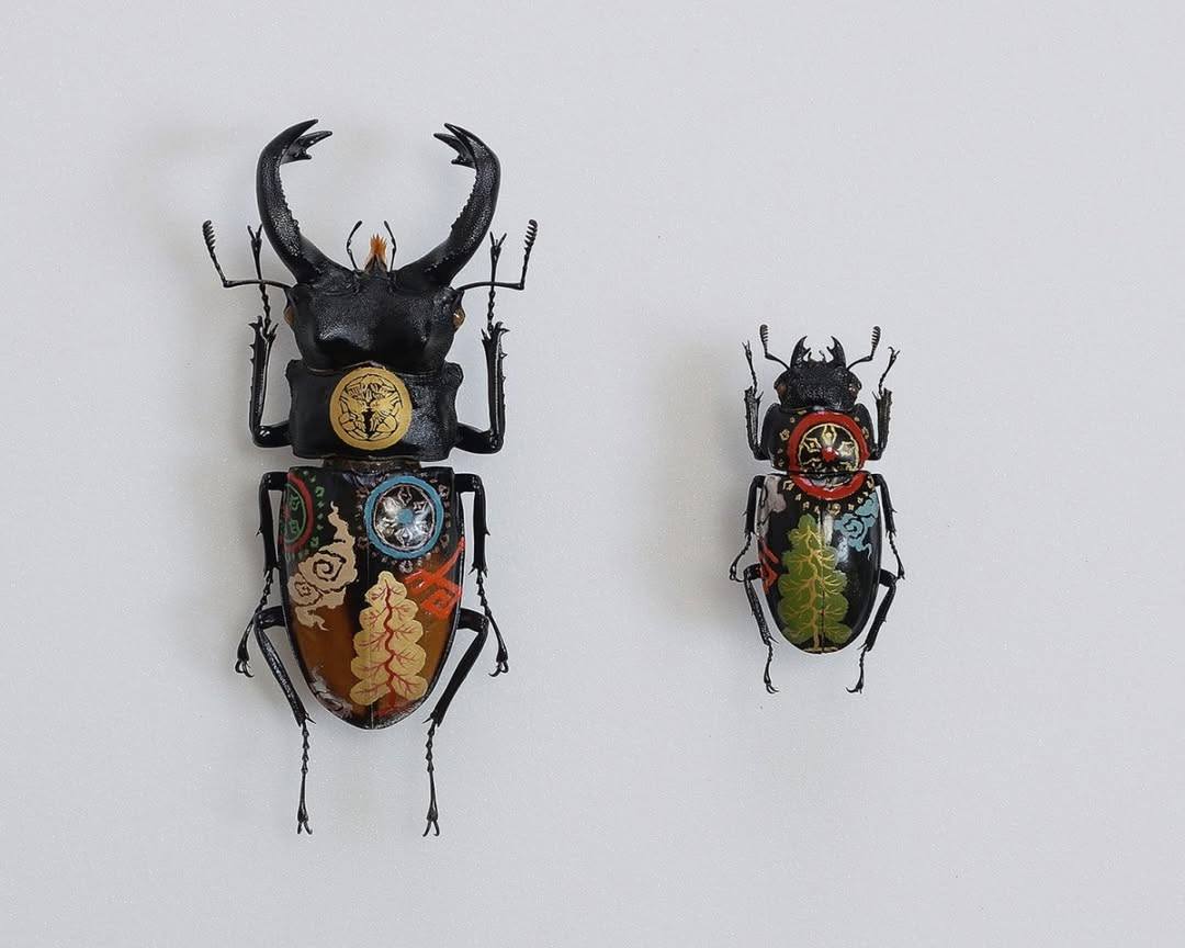 האמן אקיהירו היגוצ'י Akihiro Higuchi מטוקיו (נולד ב-1969), משתמש בחיפושיות, פרפרים ויצורים שונים אחרים שסיימו את חייהם, כשהם משומרים והוא "מחזיר להם חיים" כשהוא מעטר אותם בצבעי מים ושמן. עיצוביו שואבים השראה מעבודות לכה אורושי יפניות מסורתיות, יחד עם עלי כסף וזהב או מדמויות מצוירות מודרניות. אורושי לקחה חלק מרכזי באמנות היפנית במשך למעלה מ-9,000 שנה ופרחה במיוחד בתקופת אדו.