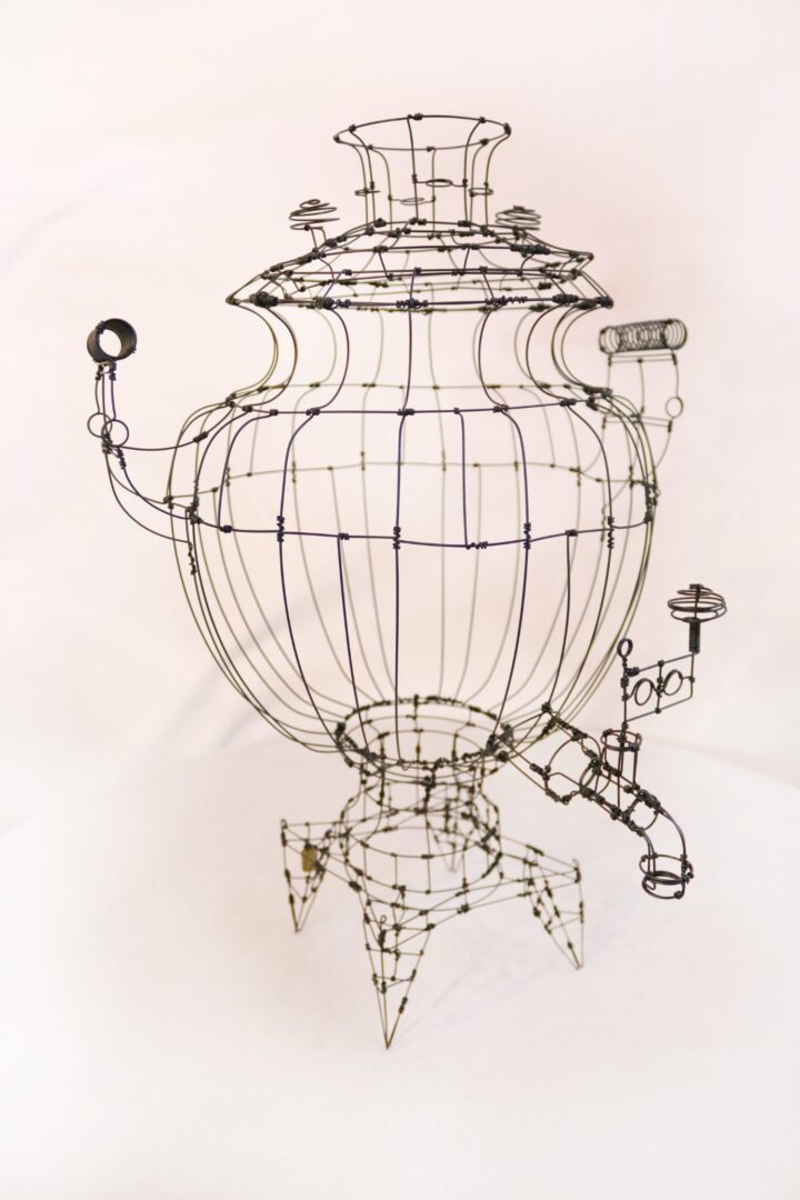 סמובר, פסל תלת מימדי מחוט ברזל, 2018. עבודה וצילום קובי סיבוני