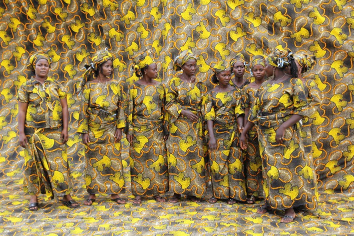 הצלמת הצרפתייה Myette Fauchère בחרה להתבונן במסורת הזו מזווית יוצאת דופן: היא צילמה את המצולמים כשהם עומדים מול רקע זהה לדוגמת הבד שהם לובשים. התוצאה מרהיבה – הדמויות כמעט “נעלמות” בתוך הסביבה, כמו זיקיות, ורק הפנים, הידיים והרגליים נותרות גלויות.