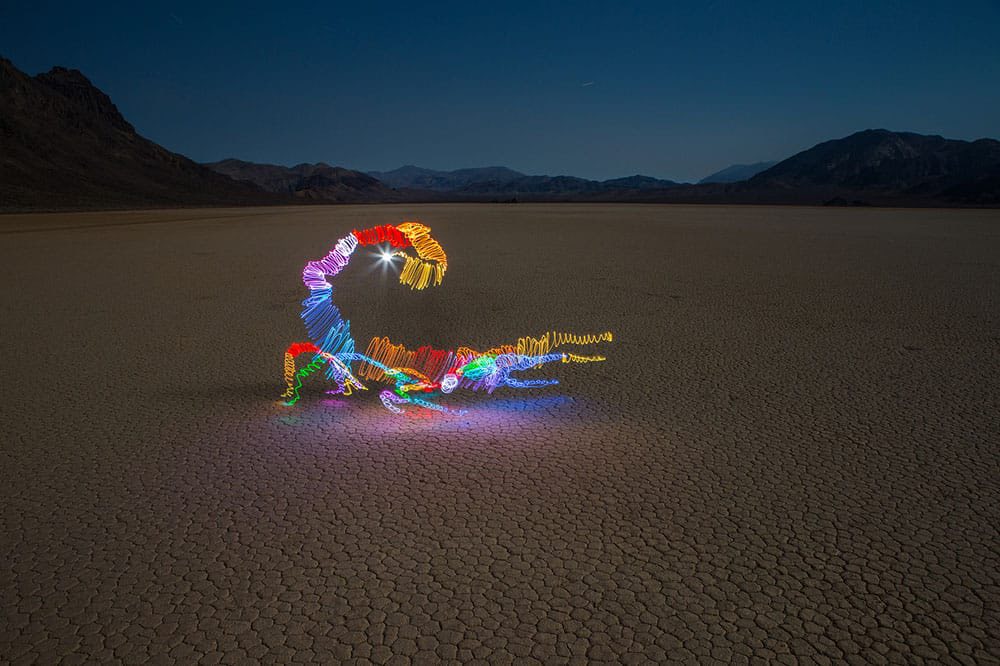 האמן Darren Pearson המכונה בשם האמנותי Dariustwin, הוא אמן מוערך מאוד של צילום ציורי אור. טכניקה המצלמת תנועה תוך חשיפה ארוכה, והופכת את החושך לקנבס תוסס ומאיר, ריקוד דינמי של צבע ואור, בכיוכוב יצורים פנטסטיים וזוהרים, כולם חדורים בזוהר אנרגטי מעולם אחר.