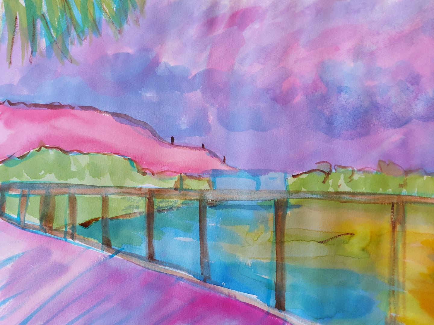 נופים ראשוניים ותמימים, של ארץ ישראל היפה, מצוירים ביד ועין רגישות, אבל יותר מהם, עם לב. אקוורלים בצבעים רכים, מרפרפים, מלטפים, המעבירים את תחושת המרחבים השלווים והמרגיעים, שמלאו את העין והריאות והמתקיימים כיום בעיקר כגעגוע, אצל כל אחד מאיתנו, בני הארץ הזאת.