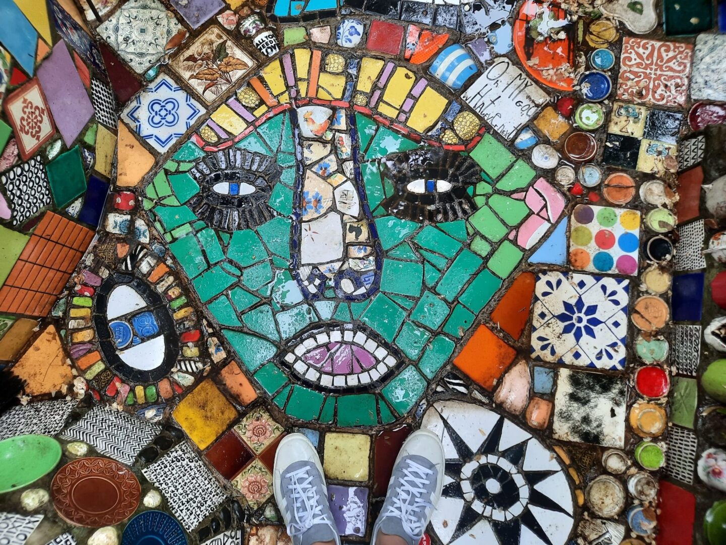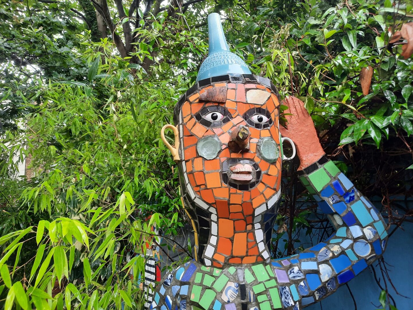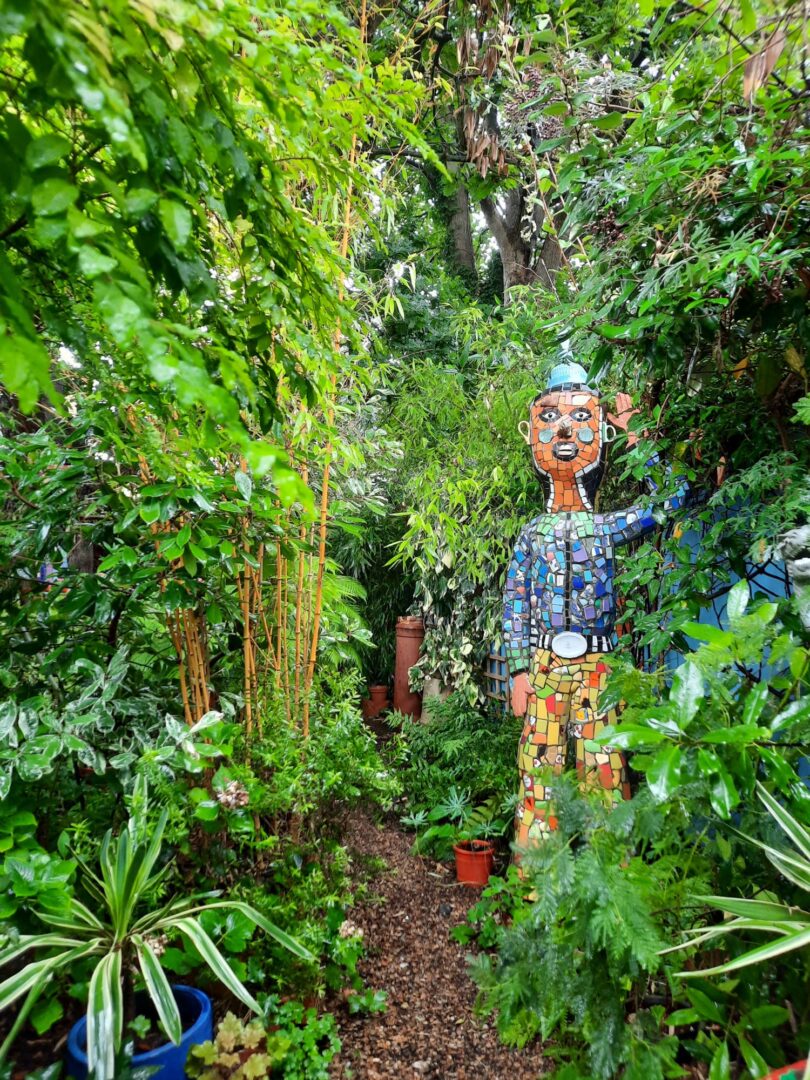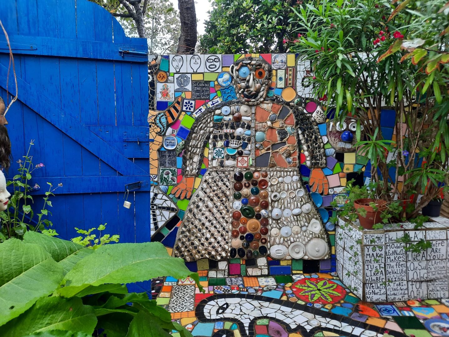 "שלום אורח" כתוב על שביל הכניסה לבית, לצד ראש בובה נכה מקרמיקה. בובות אדומות של ילדים עומדות בגינה ובוהות באורחים המגיעים ונכנסים לבית דרך קירות מכוסים בחלוקי נחל ובספלי תה אנגליים. לעתים קרובות האורחים מביאים איתם חפצים ותורמים אותם לבית. "אישה אחת הביאה מטען שלם של שיניים תותבות של דודתה, אהבתי את זה," הוא מספר ואכן, הן מותקנות כרגע על קיר הגינה הקדמית. "רבים מהאנשים שמעצבים את בתיהם, חושבים בכמה זה יוסיף להם כאשר ימכרו את הבית וזה לא מה שמעניין אותי," הוא אומר ומוסיף "כשאני הולך לבתים של אנשים אני חושב לעצמי, 'אלוהים אדירים, זה כל כך משעמם, איפה אתה בא כאן לביטוי כבן אדם שאתה"?
