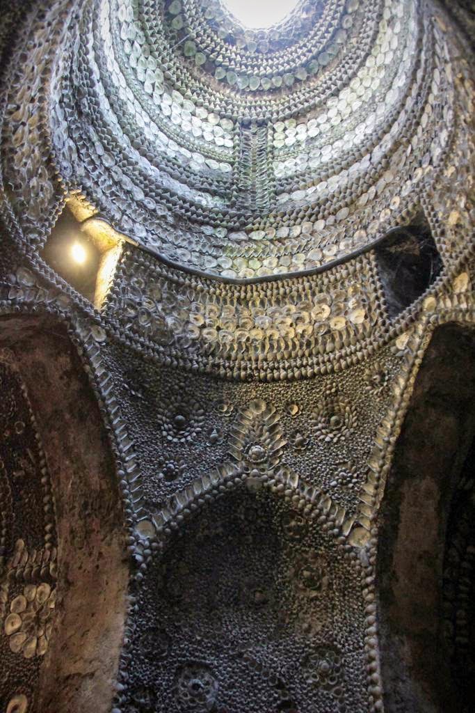 The ornate ceiling of Woburn Abbey's shell grotto