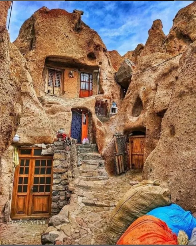 הבתים החצובים בהר של Kandovan – במזרח אזרבייג’אן, סמוך ל־Tabriz – כפר בן כ־800 שנה שבו הבתים אינם בנויים על ההר אלא בתוכו. חללי המגורים נחצבו בסלעים געשיים שנוצרו מהתפרצות הר Sahand. הסלע הוולקני משמש כחומר מבודד טבעי, השומר על קרירות בקיץ וחום בחורף – פתרון אנרגטי חכם עוד לפני עידן המיזוג. בכפר פועל גם מלון “Rocky”, שנחצב במערות ומציע חוויית אירוח ייחודית בלב הסלע.