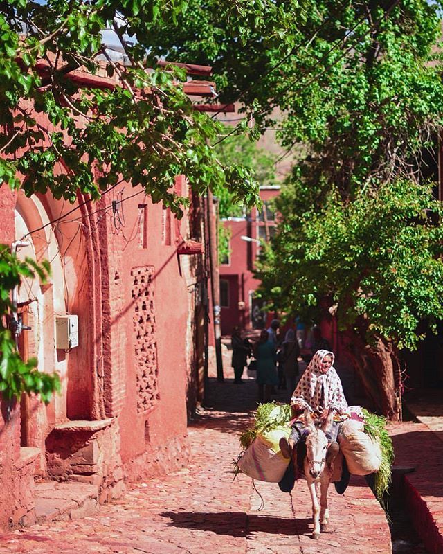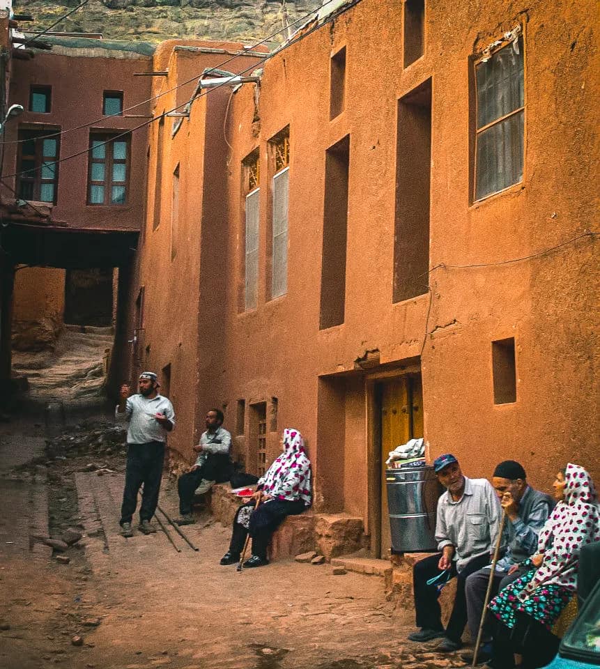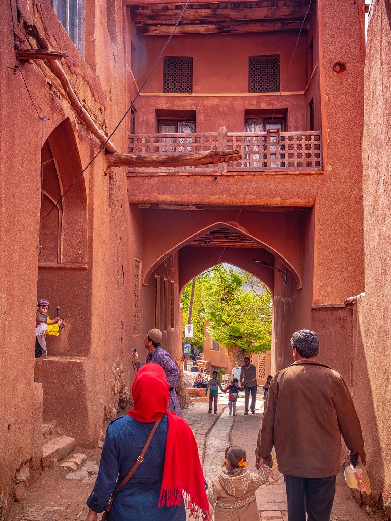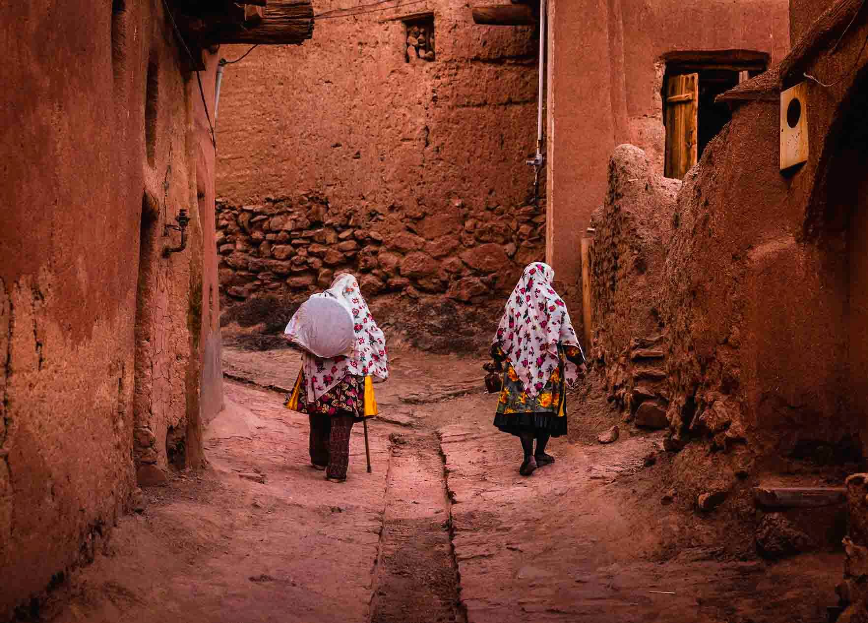 הכפר Abyaneh – הכפר האדום בעמק צר בהרי כרכאס, שוכן צפונית ל־Isfahan ו־70 ק"מ מדרום־מזרח ל־Kashan – אחד הכפרים הזורואסטריים האחרונים ששרדו באזור. הכפר, הבנוי מלבני בוץ בגוון אדמדם בשל תחמוצת הברזל שבאוויר ובקרקע, פונה מזרחה כדי למקסם את אור השמש. סמטאותיו מאכלסות פחות מ־250 תושבים קבועים, רובם מבוגרים, השומרים על מסורות עתיקות – כולל שפה פרסית תיכונה ולבוש מסורתי ייחודי. בלב הכפר ניצב מסגד ג’מה מהמאה ה־11, ולצדו מקדש אש זורואסטרי מהתקופה הסאסאנית, טירות ואתרי עלייה לרגל. הבידוד הגיאוגרפי הפך למנגנון שימור תרבותי.