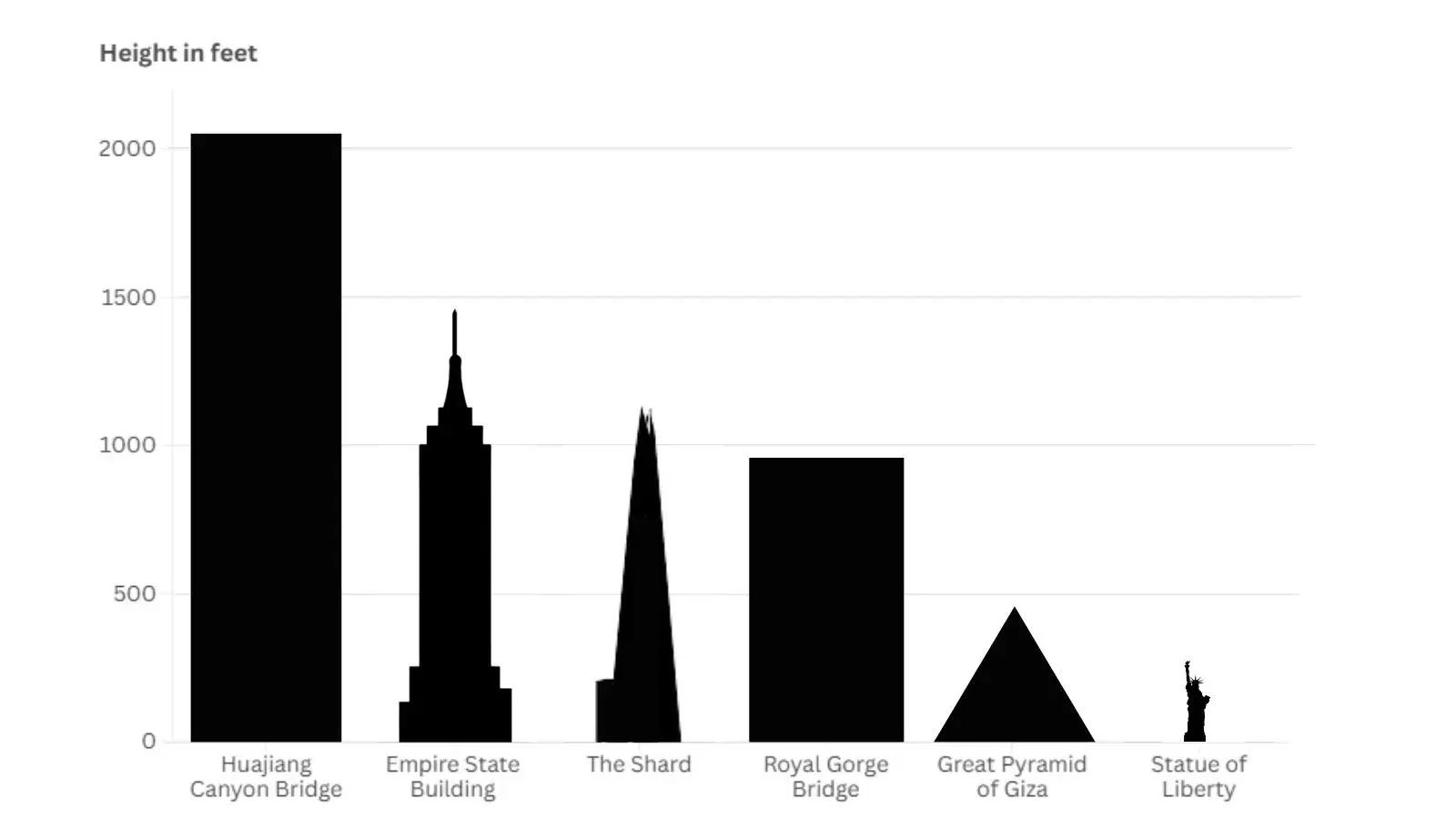 הגשר Huajiang Grand Canyon Bridge הממוקם במחוז ההררי גוויג'ואו, הפך חצייה של שעתיים למסע של שתי דקות בלבד. אורכו 2,890 מטרים ועם מוטה של 1,420 מטרים (גבוה פי 9 מגשר הזהב בסן פרנציסקו) והוא נבנה במשך שלוש שנים באמצעות טכנולוגיות מתקדמות – לוויינים, רחפנים וכבלים חכמים המצוידים בחיישנים – כדי להתגבר על אתגרים עצומים, קורות הפלדה של הגשר לבדן שוקלות יותר מפי שניים ממשקלו של מגדל אייפל.