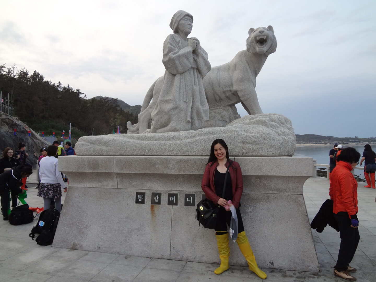 לתופעה נקשר גם סיפור פולקולוריסטי, כפי שמעיד פסל של אשה זקנה וטיגריס, הניצב במקום. על פי האגדה, אוכלוסיית הנמרים שפעה פעם באי ג'ינדו, אך כאשר הם החלו לפלוש לכפרים מקומיים, אנשים נמלטו לאי מודו. אישה זקנה אחת, בביונג, ננטשה בטעות מאחור. היא התפללה לאל האוקיינוס, יונגוונג ואז הופיעה קשת בענן והמים נחצו באורח פלא, כך שמשפחתה של בביונג חצתה את הים וחברה אליה.
