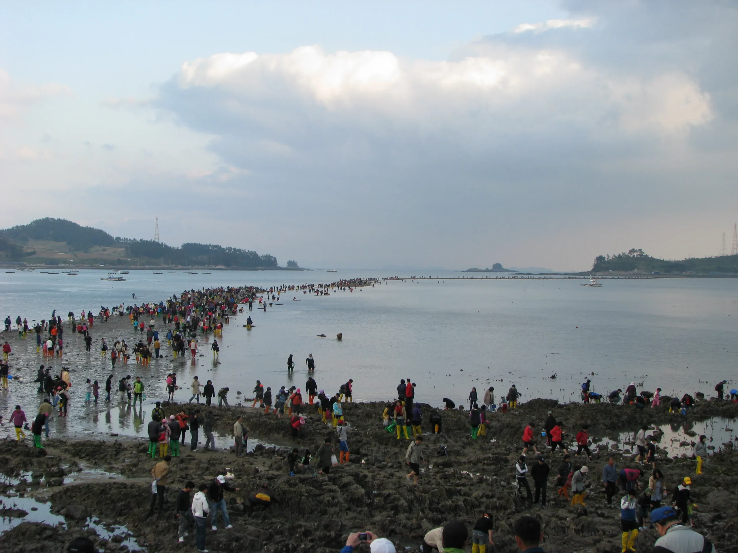 השעה הפלאית שבה הים נחצה לשניים והשביל לפתע מתגלה, פעמיים עד שלוש פעמים בשנה בין מרץ ליוני, היא במרכז ארבעת ימי הפסטיבל. בעולם מתייחסים לתופעה כגרסה הקוריאנית של קריעת ים סוף המקראית, אבל התופעה רחוקה מלהיות נס, אלא תוצאה של הרמוניית גאות ושפל. תנועות כדור הארץ והירח הגורמות למרחקים משתנים בין השניים, נקראים הרמוניות גאות ושפל מכיוון שהן פועלות באופן קבוע.