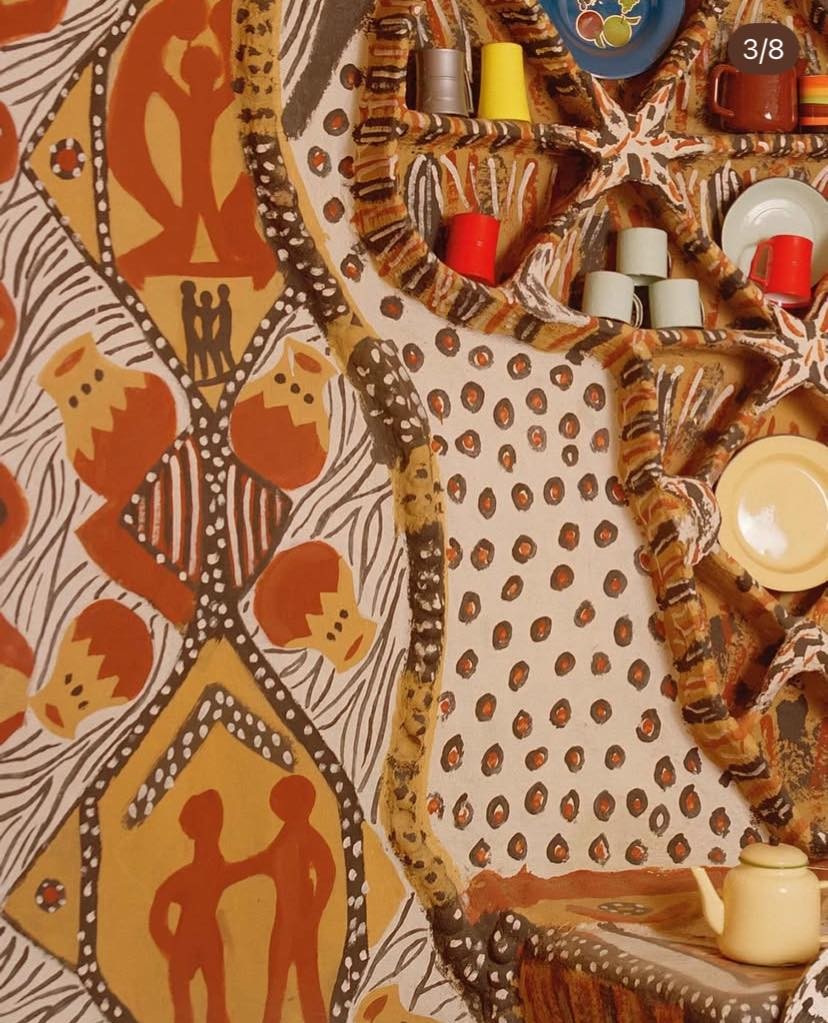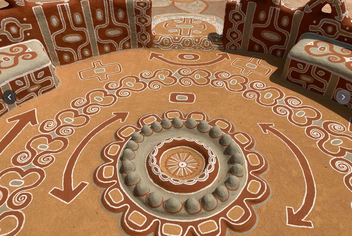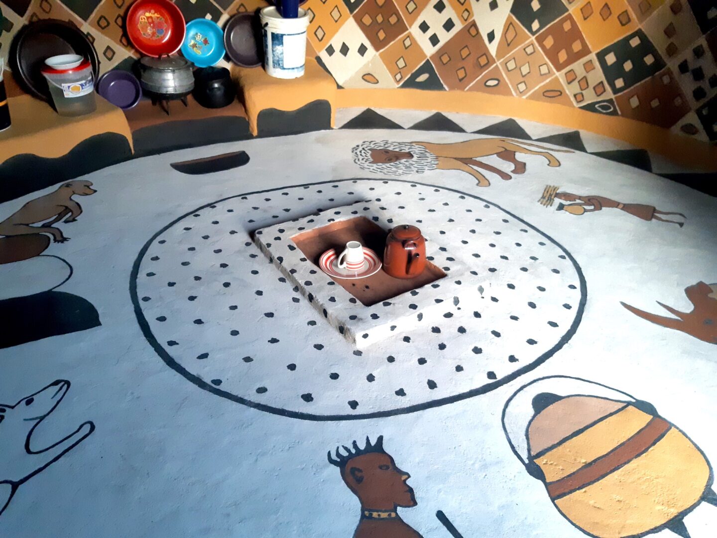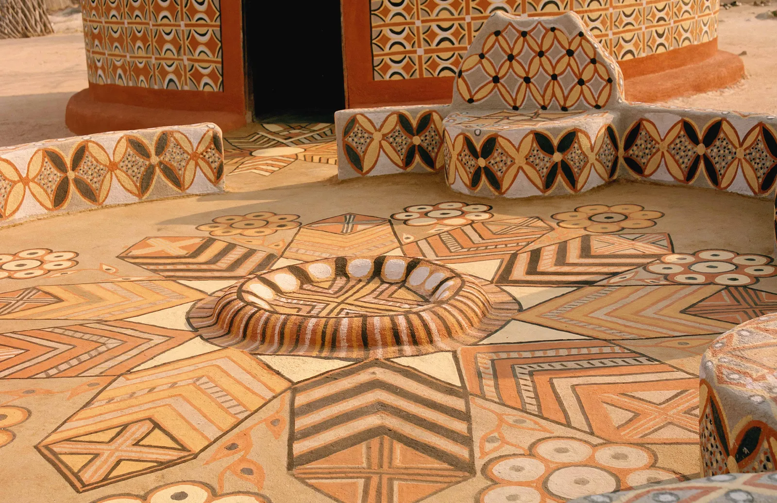 הצבעים הלבנים של הרונדבל, בית כפרי, נגזרים מאפר עץ האומטסווירי, והאדום והצהוב מחימר. מבנים עם צורות של לבנים מרובעות מקושרים לחיי העיר ולכן נתפסים כסימן לקידמה ולשגשוג. לאמנות יש קצב, המושג באמצעות מוטיבים חוזרים כמו משולשים, עיגולים, שברון וקו צולב. יש להם סמליות מיוחדת: השברון למשל, מייצג את הרציפות של המין האנושי, הנצח.