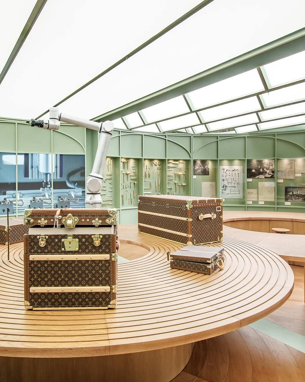 לואי שנחאי כוללת שלוש קומות, בשתי הראשונות מוצגת תערוכה של התרבות וההיסטוריה של המותג. הוא תוכנן על ידי האדריכל הנודע שוהיי שיגמאצו, ממשרד האדריכלות OMA. המבקרים נכנסים דרך Trunkscape מעורר ההשראה, מיצב הכולל ארגזים עם מונוגרמה של LV עם מראות טבע משתנות ללא הרף כרקע. תערוכת Louis Vuitton Visionary Journeys מציגים את ההיסטוריה של המותג – טיולים, אומנות, אופנה וחדשנות, מעוצבים כחוויה עבור המבקרים החולפים על פני זמן ויצירתיות, שבה העבר וההווה מתמזגים באמצעות סיפורים. התערוכה מסתיימת בחנות מתנות. בקומה השלישית נמצא בית קפה.