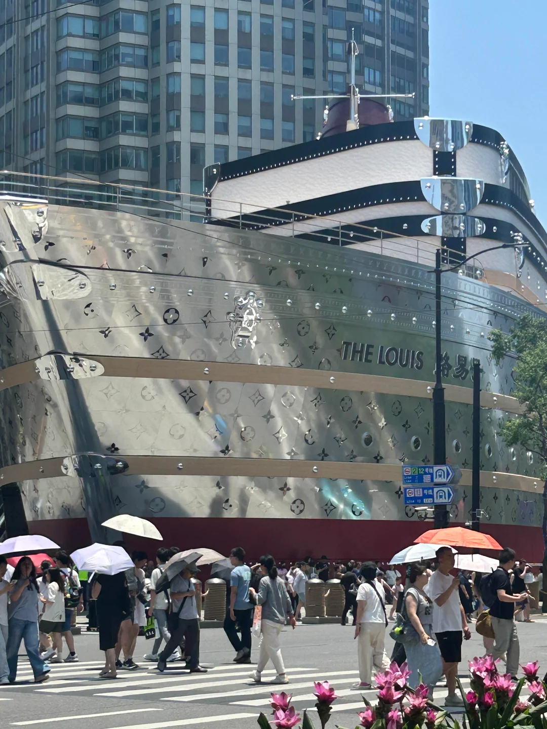 בכיכר הקדמית של HKRI Taikoo Hui, קניון במרכז שנגחאי, ניצבת ספינה ענקית - זוהי לואי שנגחאי, חנות קונספט של לואי ויטון בצורת אניה. חרטומה וגוף האניה, מעוטרים במונוגרמה האייקונית של החברה, בסיפון ובקומה העליונה מוערמות מזוודות נוסעים כמו בהפלגות טרנס-אוקיאניות במאה ה-19. הספינה מהווה גם מחווה להיסטוריה של הנמל של שנגחאי כ"שער למזרח".