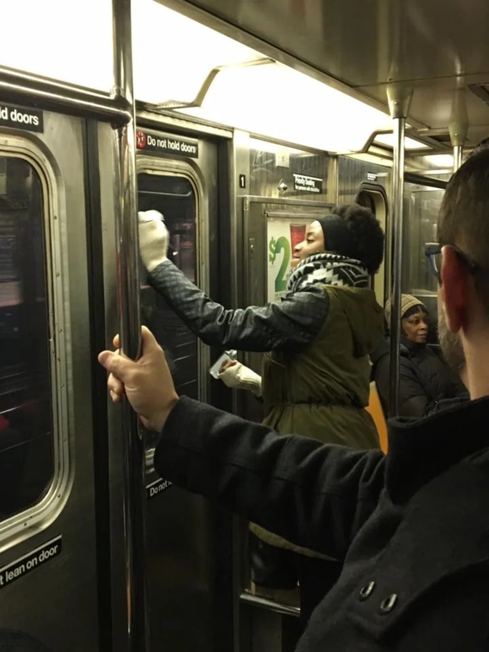 האירוע התרחש לאחר ש-Gregory Locke, עורך דין בן 27 שחזר הביתה מבילוי לילי, נחרד לגלות כי קירות הקרון, החלונות והמפות כוסו בכתובות נאצה קשות, כולל סמלים נאציים ומסרים אלימים. לדבריו, תחושת ההלם התחלפה בזעזוע והוא בחר לפעול. לצידו הצטרף Jared Nied, שהציע להשתמש באלכוג'ל להסרת הכתובות. הם שאלו אם למישהו בקרון יש חומר חיטוי ידיים. "מעולם לא ראיתי כל כך הרבה אנשים מושיטים יד לתיקים ולכיסים שלהם מחפשים טישו וחומרי חיטוי", כתב גרגורי לוק בדף הפייסבוק שלו. השניים החלו לנקות – ותוך רגעים ספורים נוסעים נוספים בקרון הצטרפו למאמץ. אנשים שלפו מגבונים, טישו וחומרי חיטוי, ובתוך כחמש דקות נמחקו כל סימני השנאה.