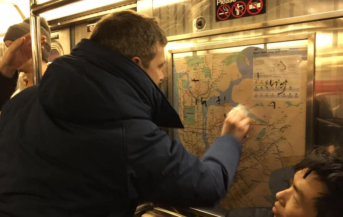 תושבי ניו יורק לרוב אוהבים לשמור על עצמם בזמן נסיעה ברכבת התחתית, אבל נוסעי רכבת תחתית בניו יורק הפכו בסוף השבוע האחרון רגע של שנאה להפגנת סולידריות אזרחית, כאשר מחקו יחד גרפיטי אנטישמי מקרון נוסעים – ביוזמה ספונטנית וללא כל תיאום מוקדם.