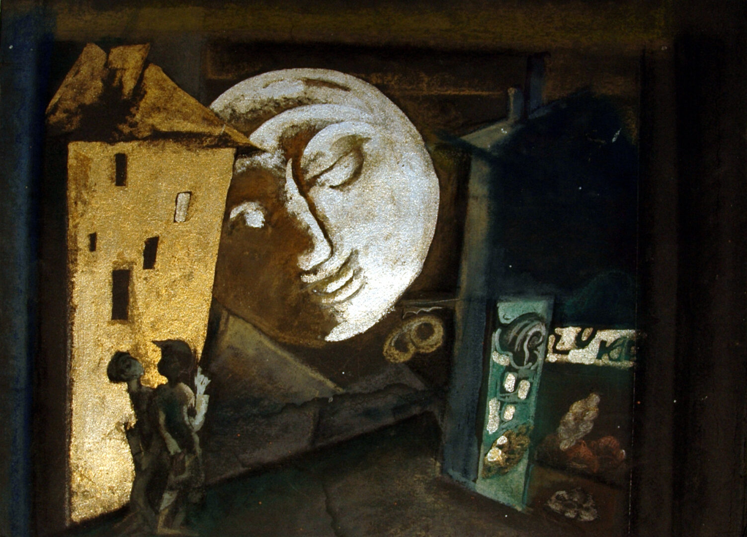 תפאורה להצגה הראשונה 'נשפי י.ל.פרץ' 1926 עיצוב תפאורה אריה אל-חנני,בימוי משה הלוי, מוסיקה יואל אנגל