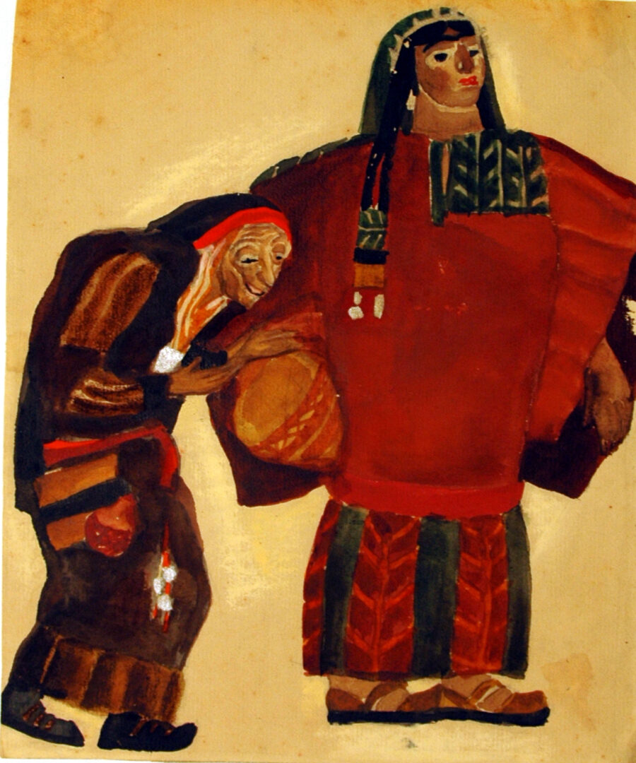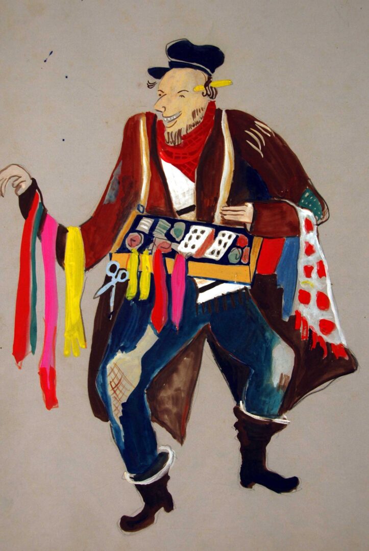 'המכשפה' מאת אברהם גולדפאדן עיצוב תפאורה ותלבושותפאול לוי 1947