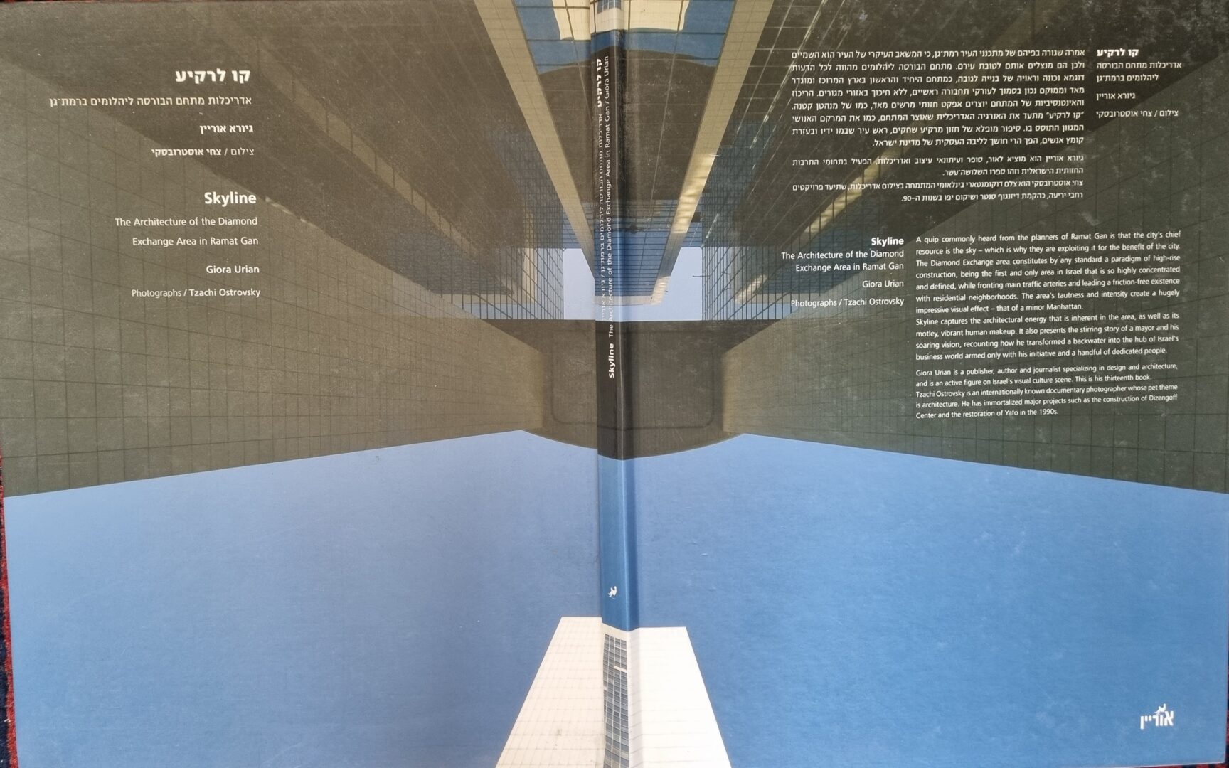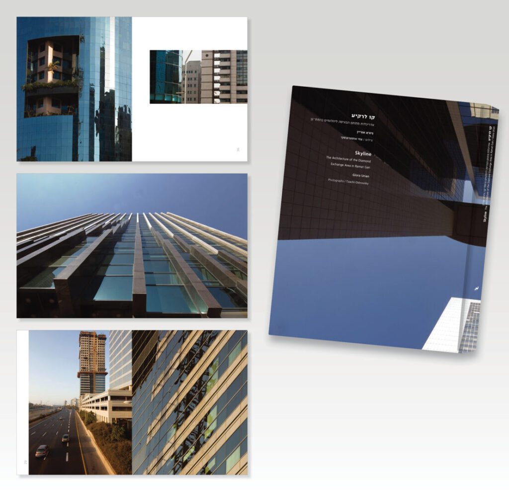 "קו לרקיע – אדריכלות מתחם הבורסה ליהלומים ברמת-גן", כתב וערך גיורא אוריין, 120 עמודים. עיצוב: דינה שהם. צילומים: צחי אוסטרובסקי