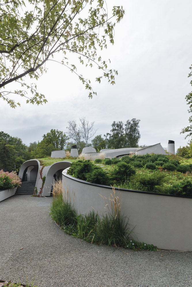הכל מאוזן כמו באורגניזם חי: החלל החיצוני של האובייקט שזור עם פנים הסלון, חדר השינה וחדרים אחרים. המשכיות הנוף לתוך הבניין ושל המבנה אל הנוף, מועצמת על ידי הגג הירוק, עליו שתול גן צמחים. זוהי אדריכלות עתידנית כהרחבה טבעית של הטבע.